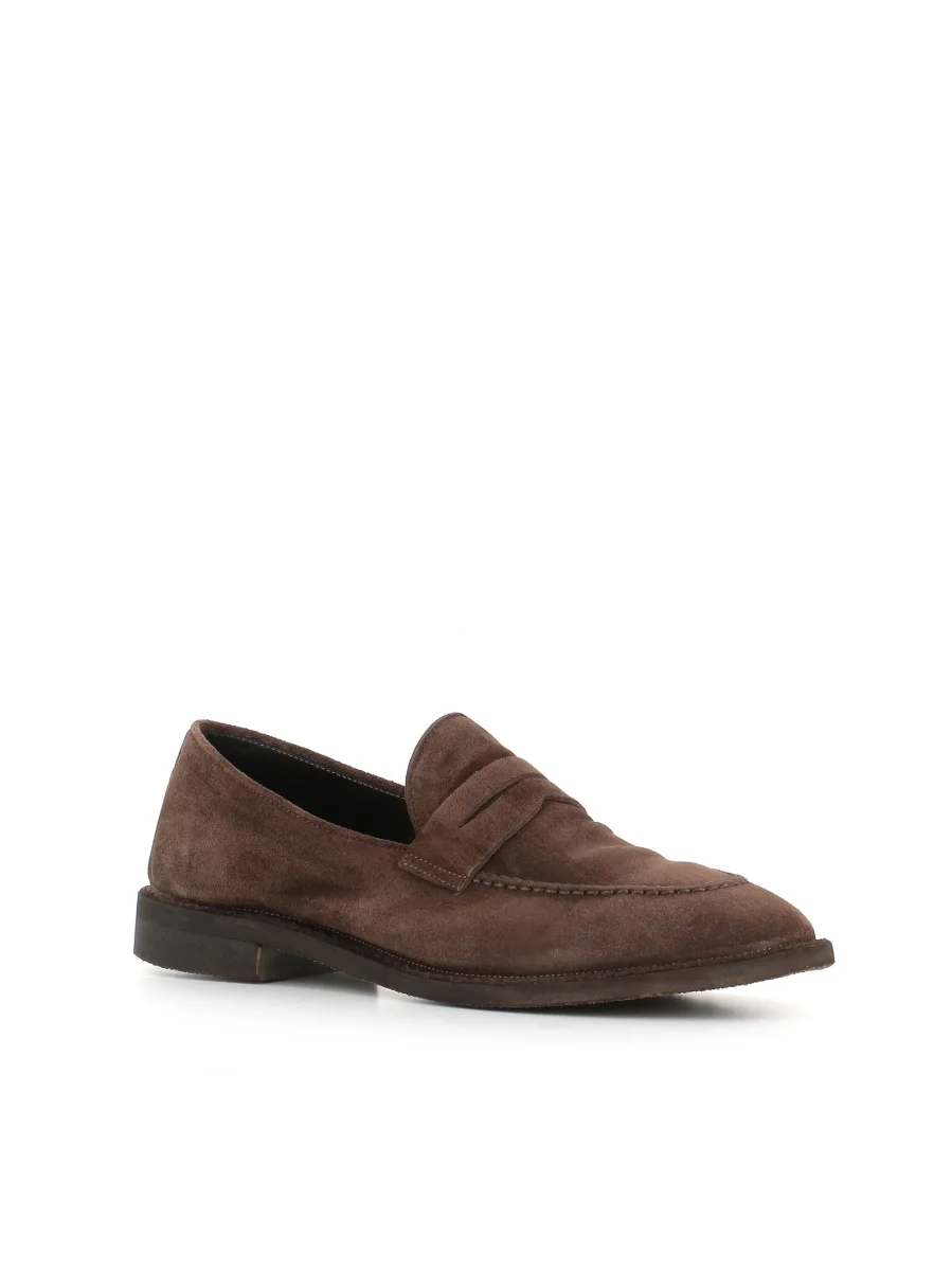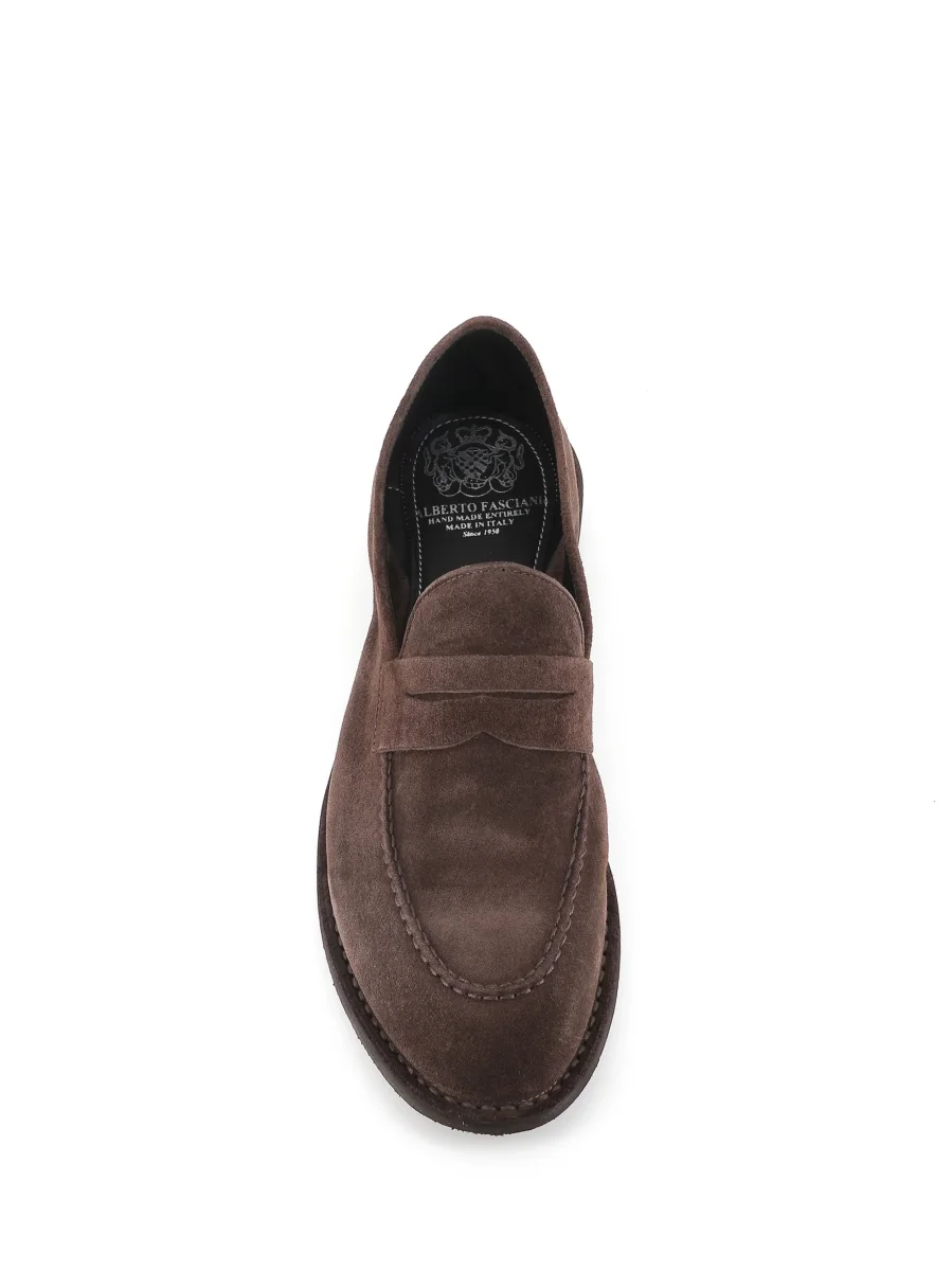 Mocassino uomo Alberto Fasciani colore marrone, realizzato in camoscio, caratterizzato da una costruzione ultra flessibile a sacchetto. Interno sfoderato. Fondo gomma.
