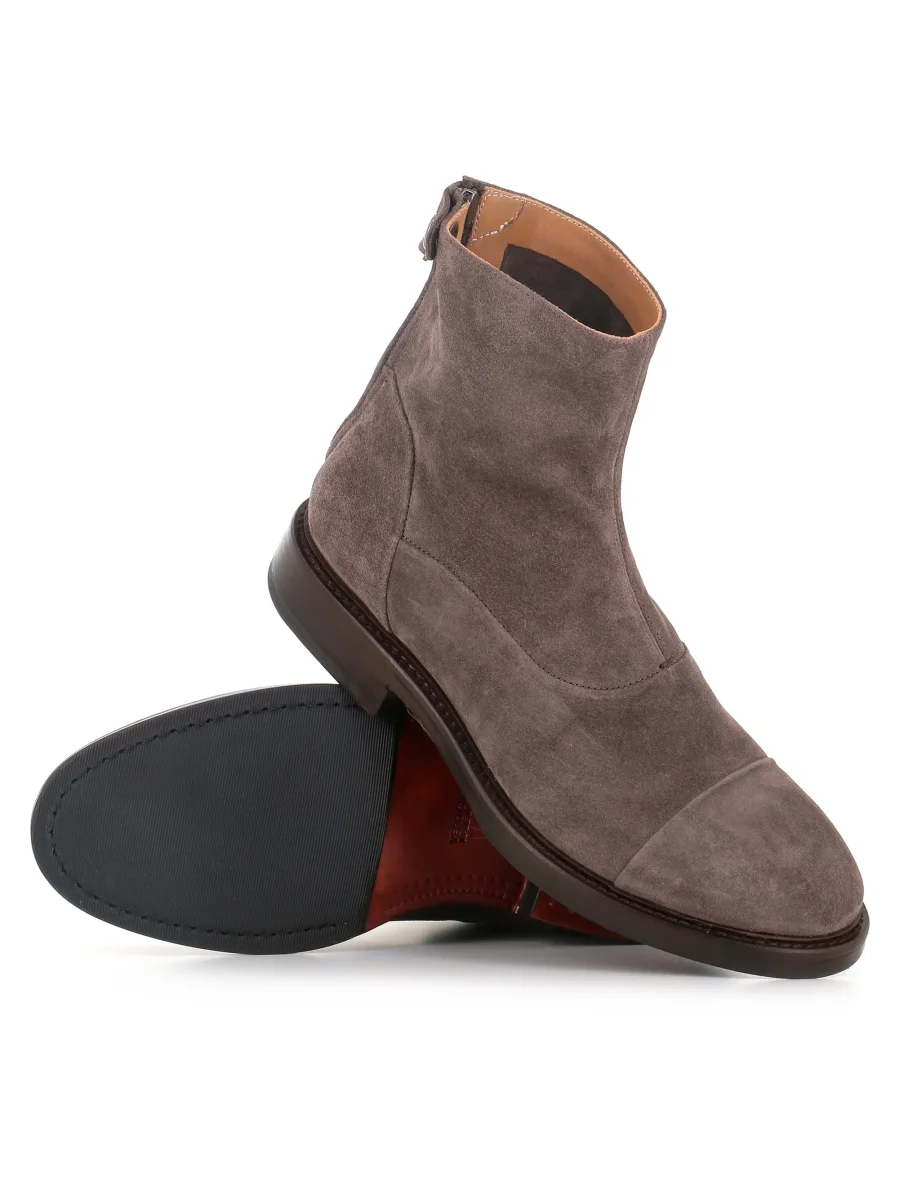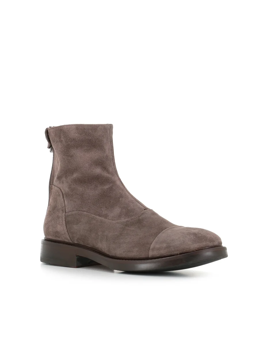 Stivaletto uomo Alberto Fasciani colore grigio, realizzato in camoscio, caratterizzato da una chiusura con zip posteriore e bottone a pressione logato. Fondo in cuoio con mezza gomma. Interno semi foderato. Tacco: 3 cm