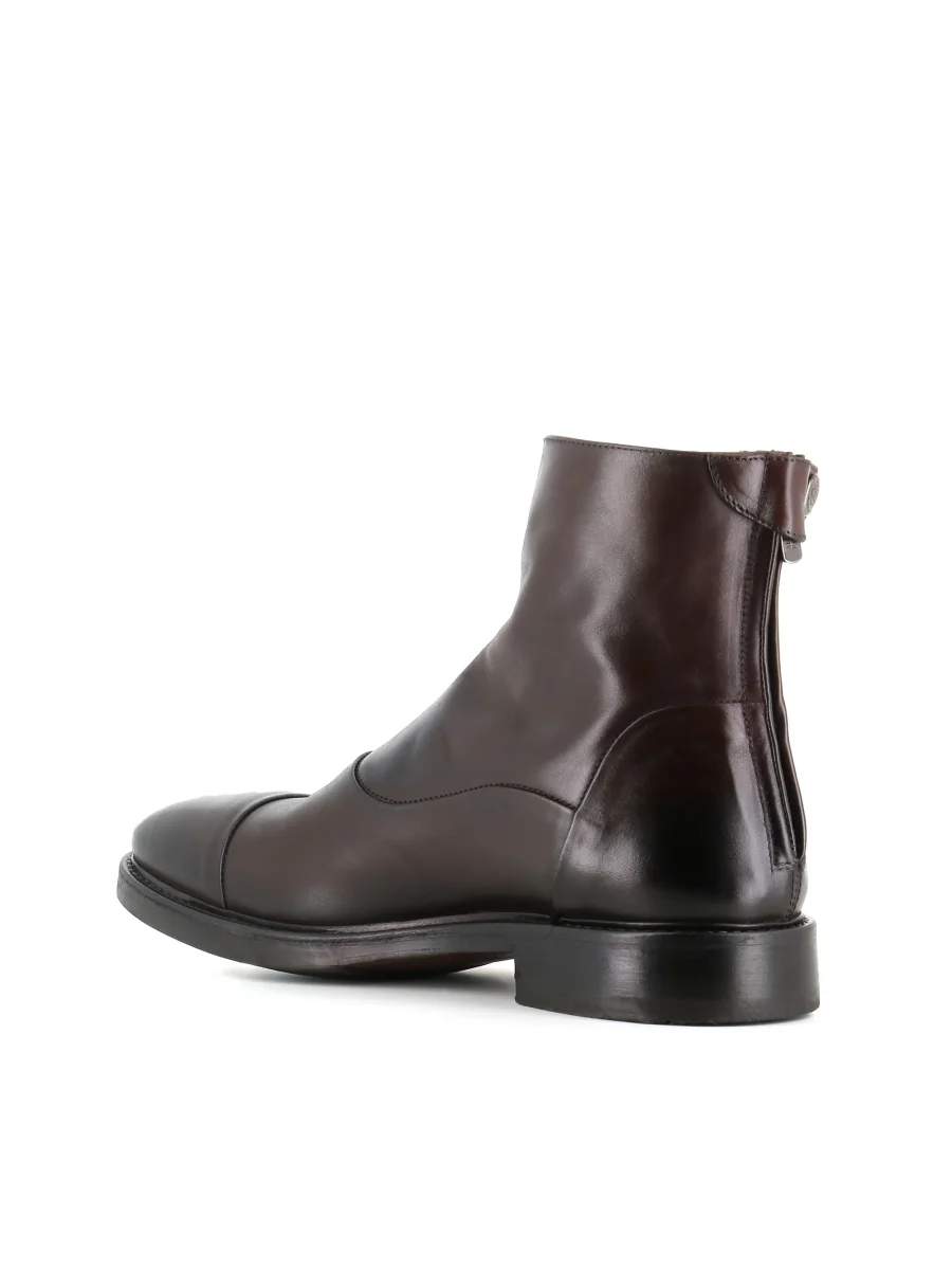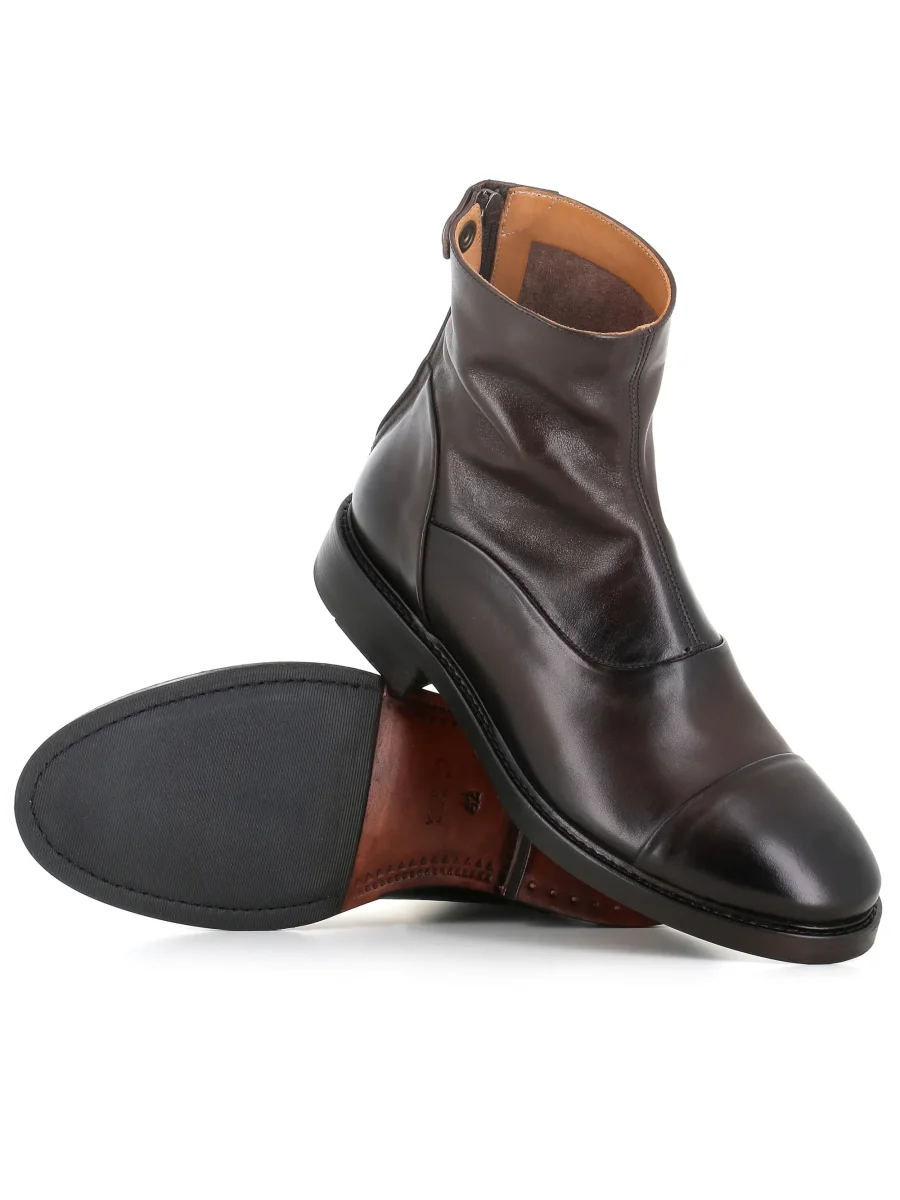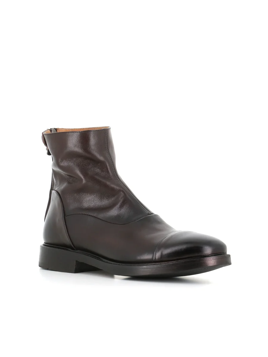 Stivaletto uomo Alberto Fasciani color mogano, realizzato in pelle, caratterizzato da una chiusura con zip posteriore e bottone a pressione logato. Sottoposto a procedura di lavaggio e lucidato interamente a mano. Fondo in cuoio con mezza gomma. Interno semi foderato. Tacco: 3 cm