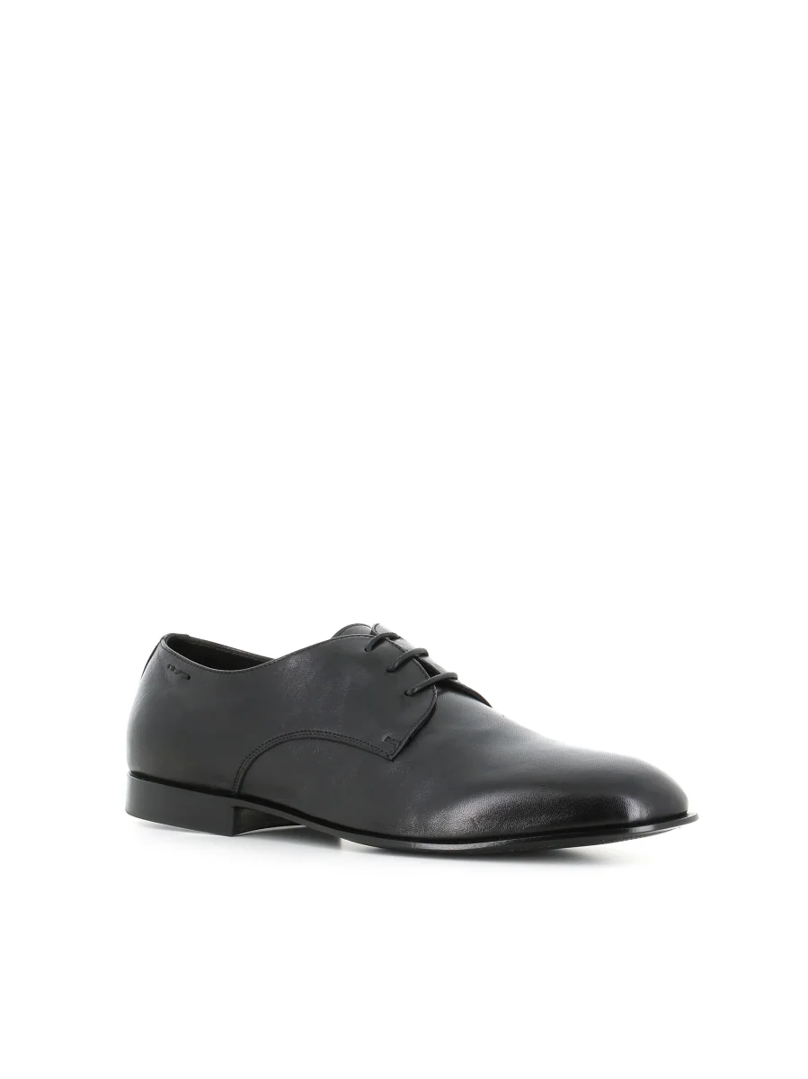 Derby uomo Alexander Hotto nero, realizzato in morbida pelle, caratterizzato da una punta tonda. Interno foderato. Rialzo interno di 1 cm. Fondo flessibile in cuoio. Lavorazione artigianale. Tacco: 2 cm