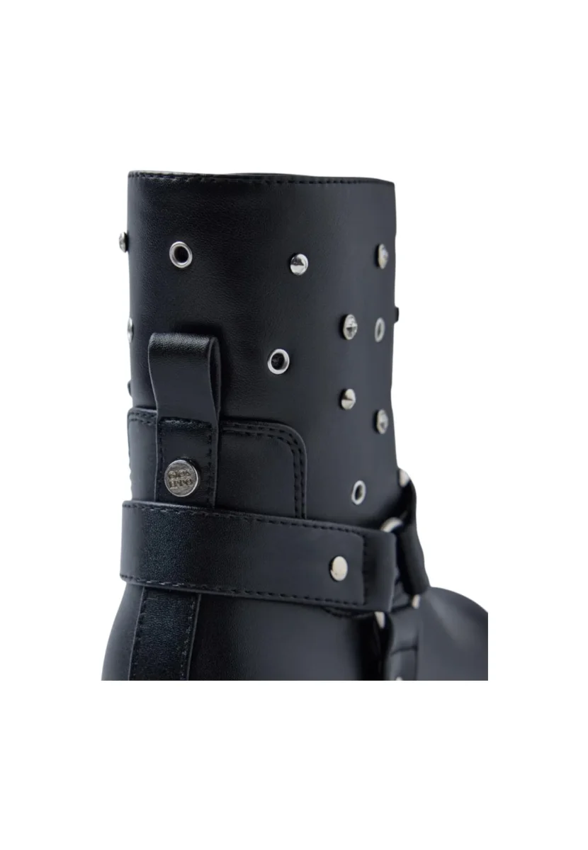 Questi stivali soft-touch con borchie, occhielli e strass sono caratterizzati da tomaia in poliuretano e fodera in poliuretano e nylon, soletta in poliuretano imbottata, รจ prevista chiusura con cerniera laterale, suola in gomma.