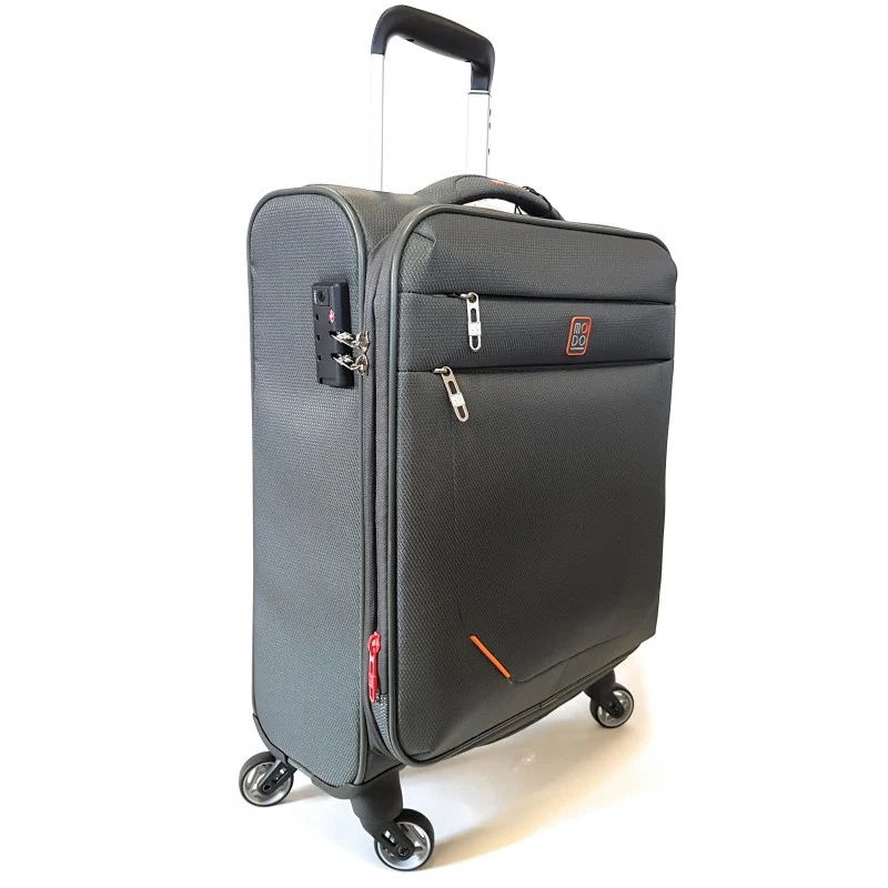 Trolley bagaglio a mano 4 ruote, leggero, espandibile con doppia tasca anteriore.