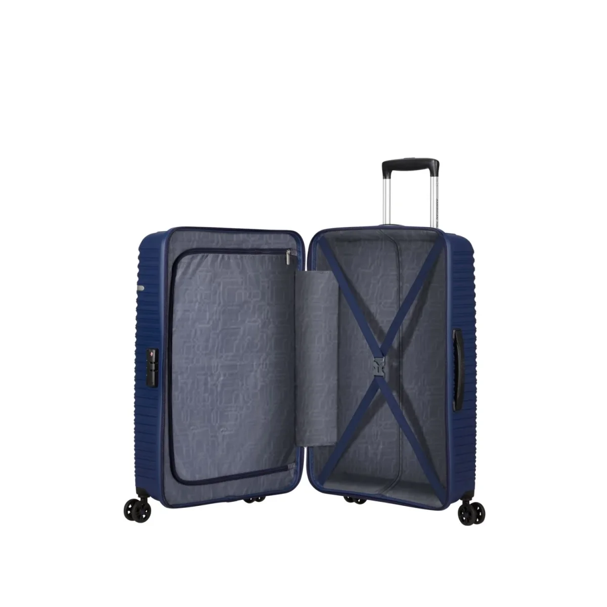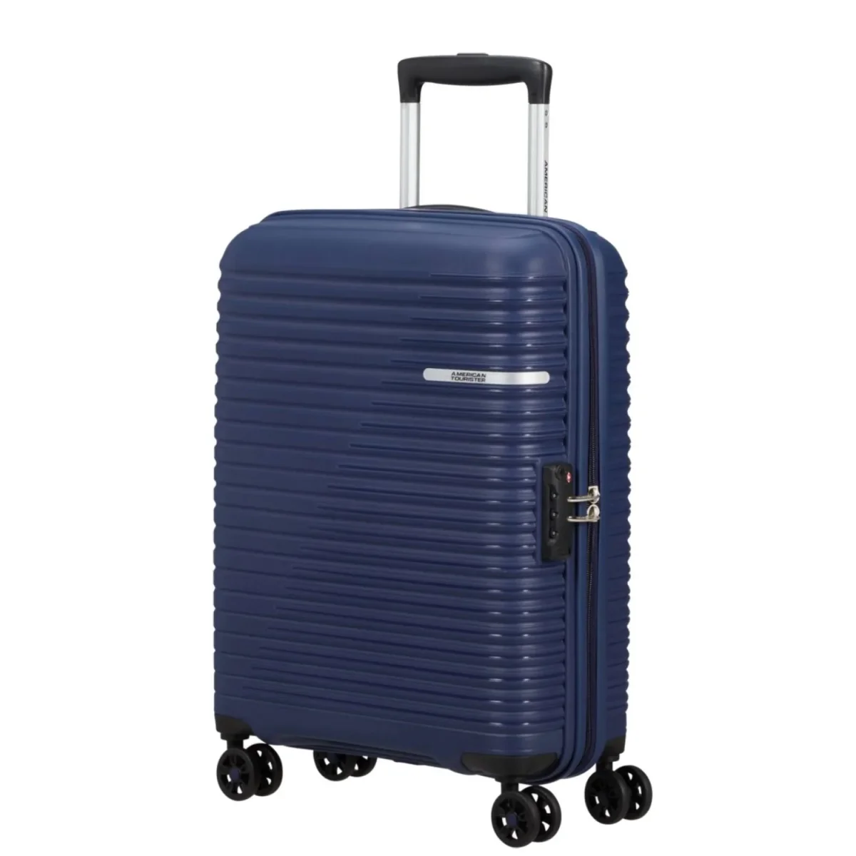 Trolley cabina American Tourister Liftoff. Trolley cabina realizzato in robusto polipropilene, quattro grandi e silenziose ruote piroettanti, zip di chiusura con sistema di sicurezza a tripla combinazione e TSA per gli Stati Uniti. Carrello di traino regolabile in altezza con push botton. Interno completamente foderato, con nastri per bloccare l’abbigliamento e divisorio. Garanzia 2 anni. Misura ideale come bagaglio a mano aeREO.
