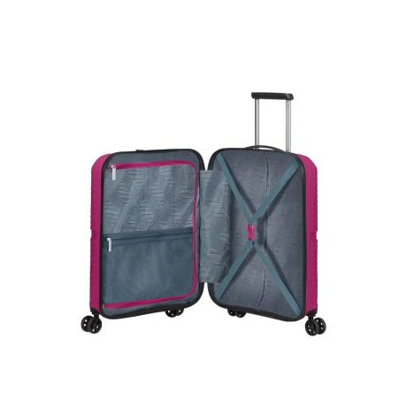 Trolley cabina American Tourister Airconic. Trolley cabina realizzato in robusto polipropilene, quattro grandi e silenziose ruote piroettanti, zip di chiusura con sistema di sicurezza a tripla combinazione e TSA per gli Stati Uniti. Carrello di traino regolabile in altezza con push botton. Interno completamente foderato, con nastri per bloccare l’abbigliamento e divisorio. Garanzia 3 anni. Misura ideale come bagaglio a mano aereo.