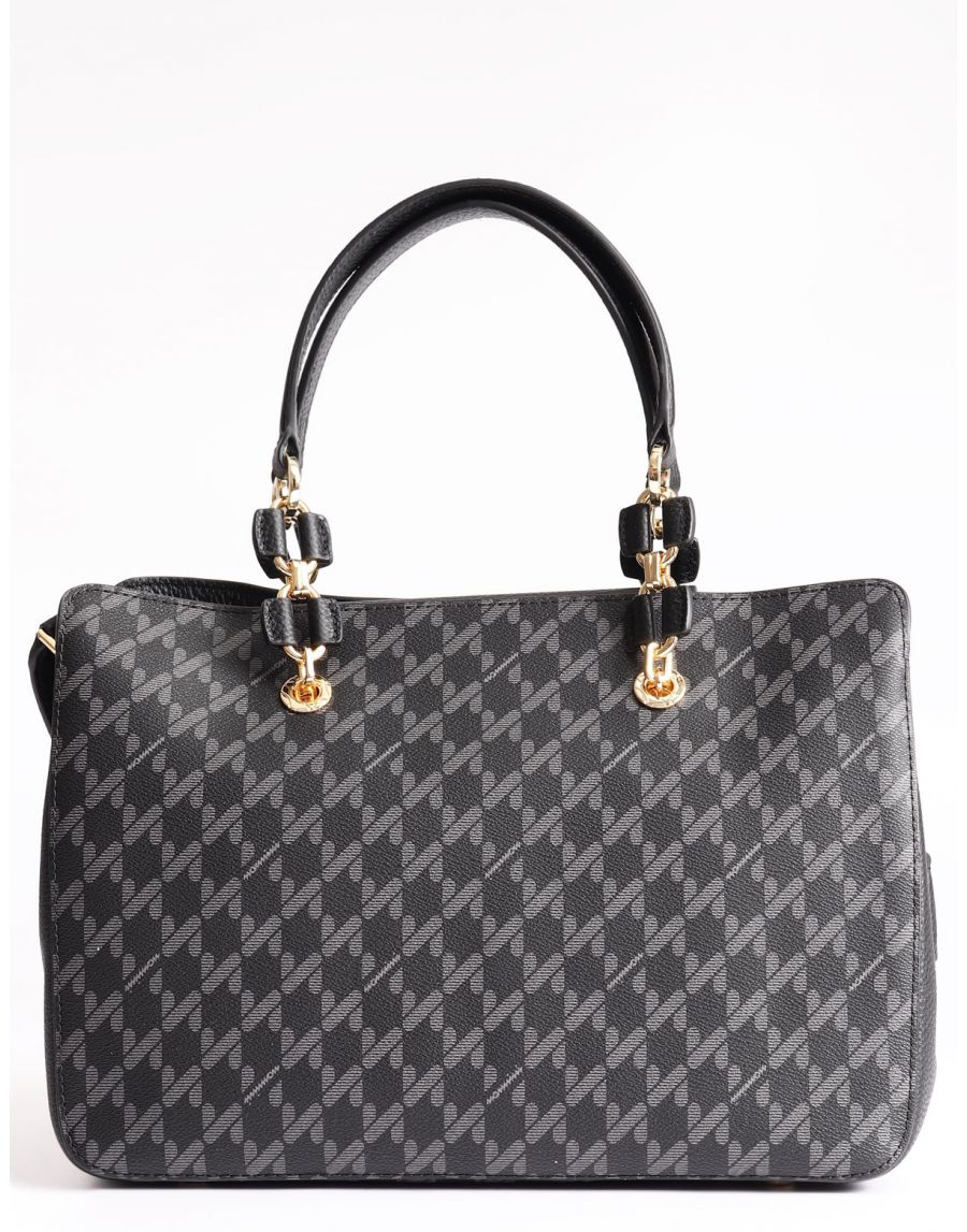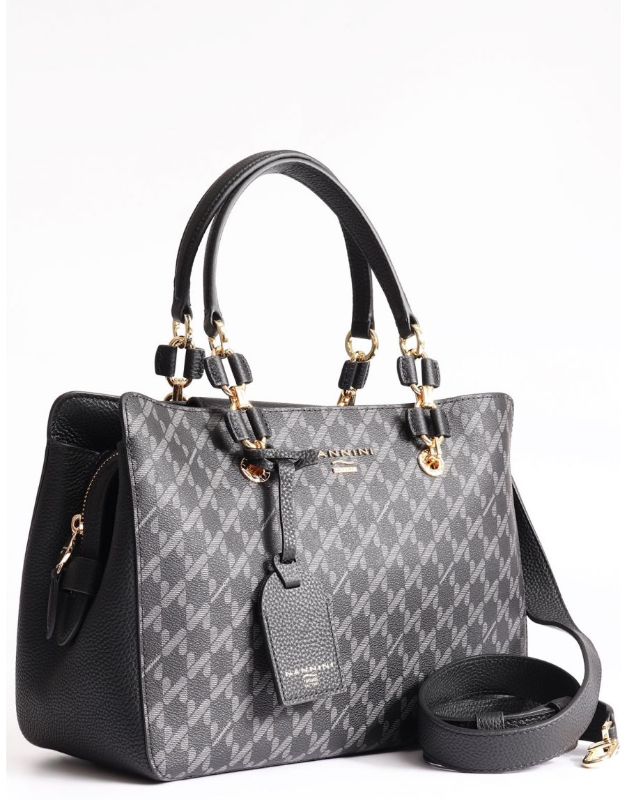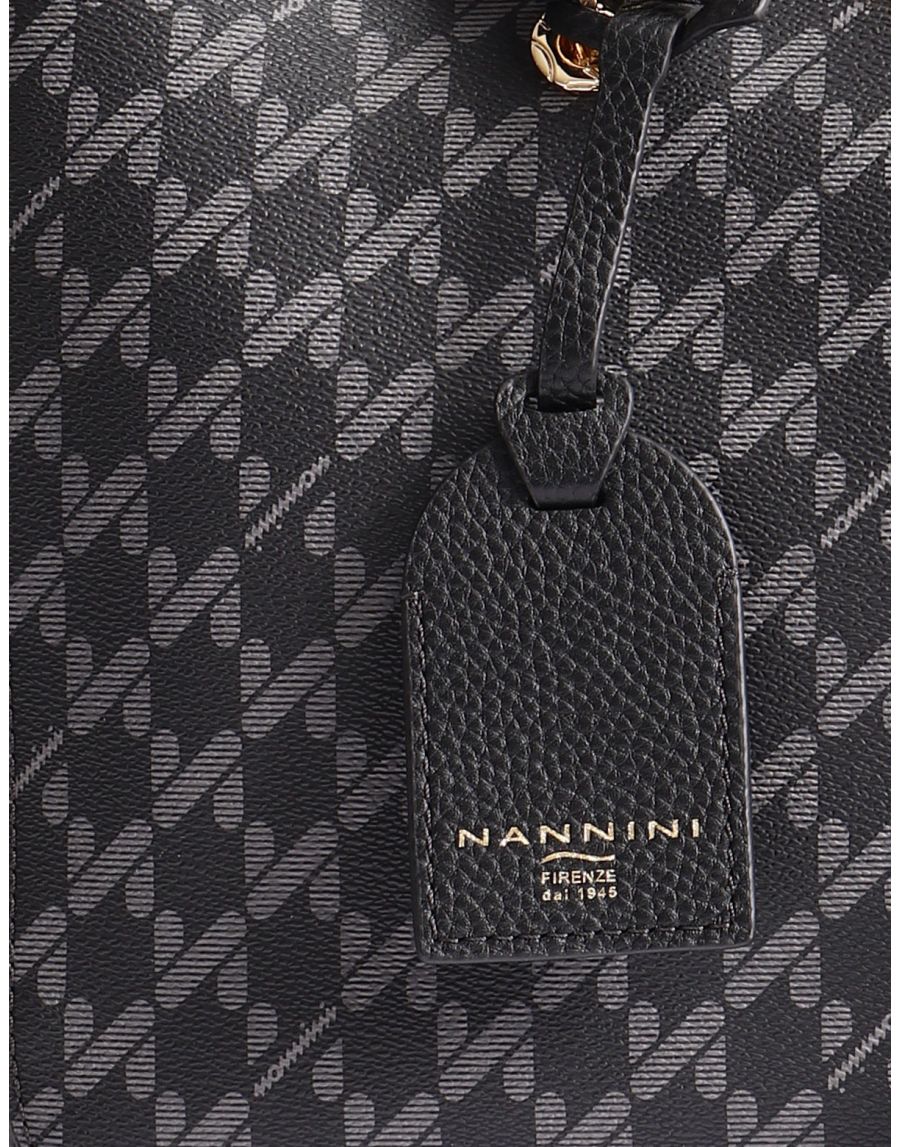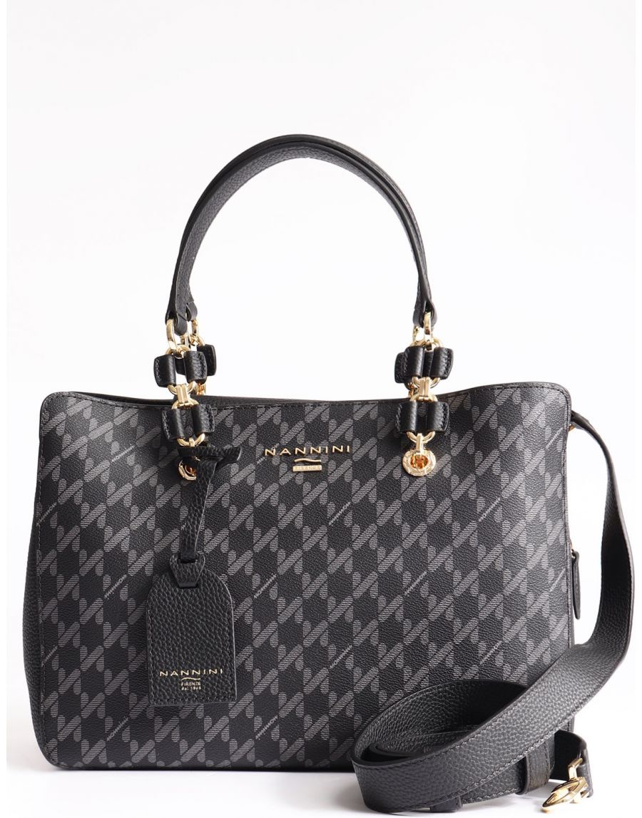 Borsa da donna Nannini modello bauletto con tracolla, con particolare pattern logato dimensioni 29x24x15 cm chiusura zip due manici tracolla regolabile e removibile scomparti interni pattern logato charm frontale dettagli in pelle