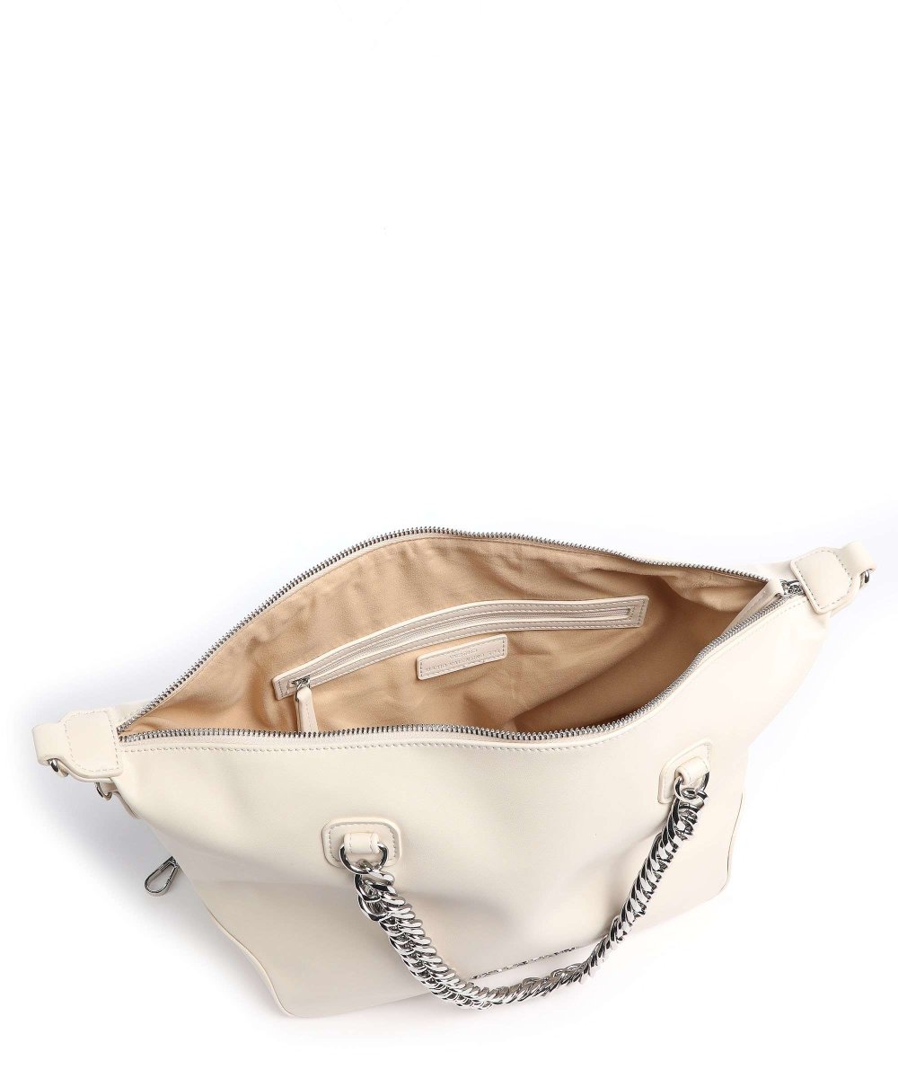 Borsa a mano in nappa morbida con manici in catena e nastro personalizzato staccabile.