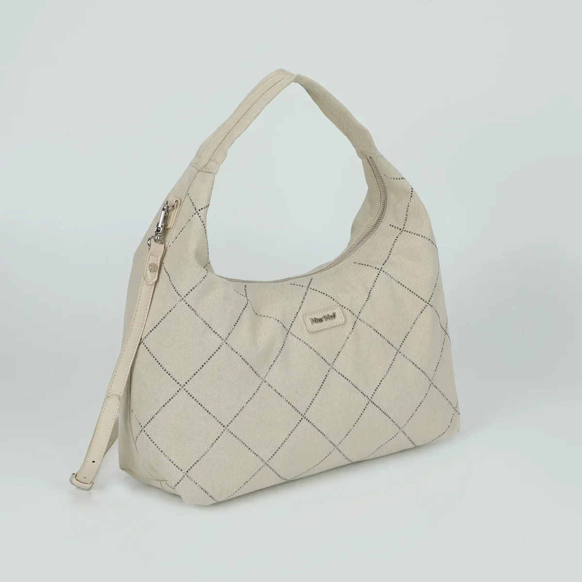 BORSA A SACCA IN JEANS CON STRASS