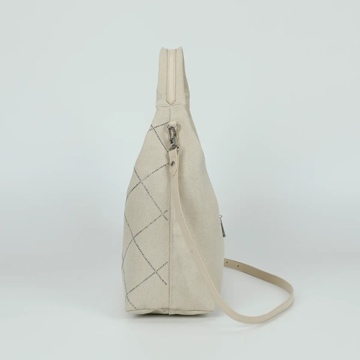BORSA A SACCA IN JEANS chiaro CON STRASS