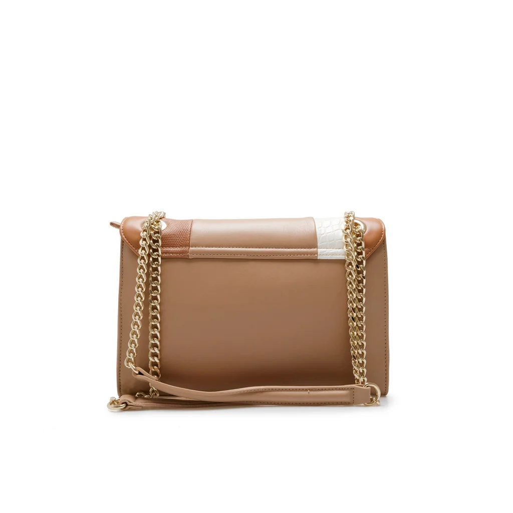 Elegante Borsa a tracolla con inserti in catena bicolor nelle nuance del cuoio e del beige.