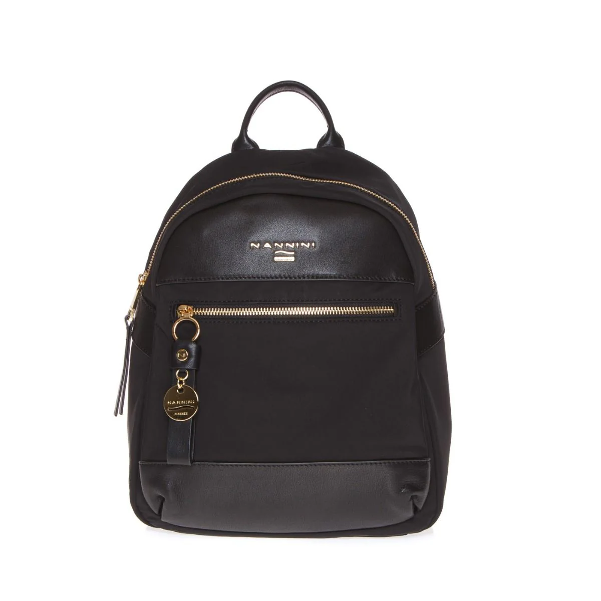 Zaino da donna NANNINI modello LIBERTY realizzato in tessuto tecnico e inserti in similpelle, pratico e molto capiente. Unico comparto interno foderato con tasche accessorie interne di cui una con zip. Spalline regolabili e manico in similpelle. Chiusura con zip. Fodera proteggi borsa in dotazione. Dimensioni: 24 x 33 x 11 cm