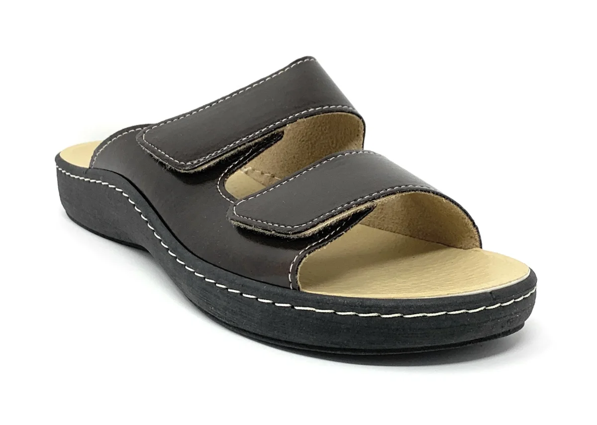 Le pantofole sono caratterizzate da un materiale esterno in pelle, fodera interna in pelle e sintetico,n sottopiede in pelle estraibile, suola in gomma, รจ prevista una chiusura con doppio strappo per consentire alla pantofola di adattarsi perfettamente al piede e non prevedono un tacco.