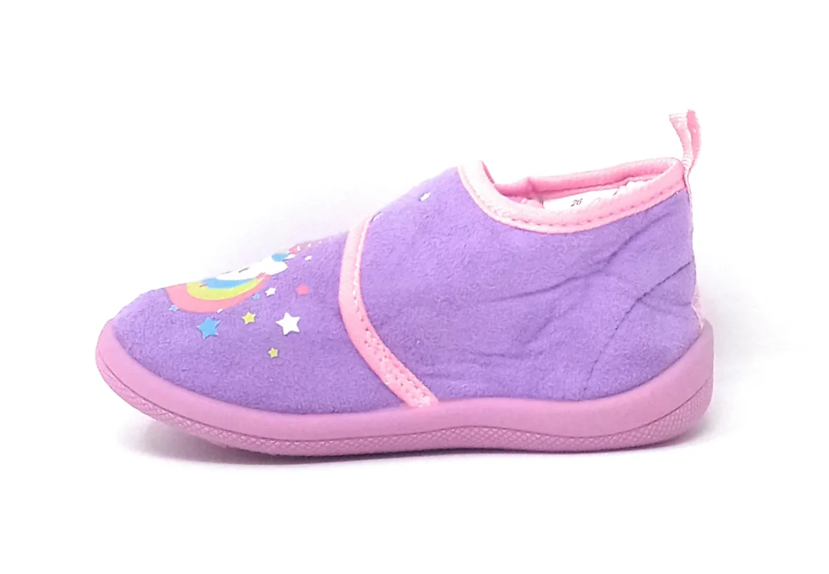 Pantofole chiuse da bimba tema unicorni. Si adattano ai piedi alla perfezione, avvolgendoli in un morbido abbraccio. Massimo comfort. Sostegno della schiena grazie a un tacco interno di 5mm. Isolamento dal pavimento grazie a riempitivi multistrato. Design italiano.