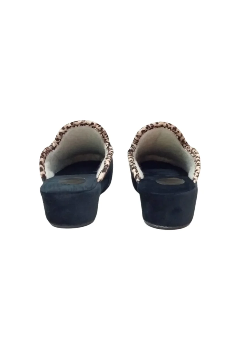 Queste pantofole sono caratterizzate da un materiale esterno e interno in tessuto, suola in gomma alta circa 4.5 cm. Non รจ prevista chiusura.