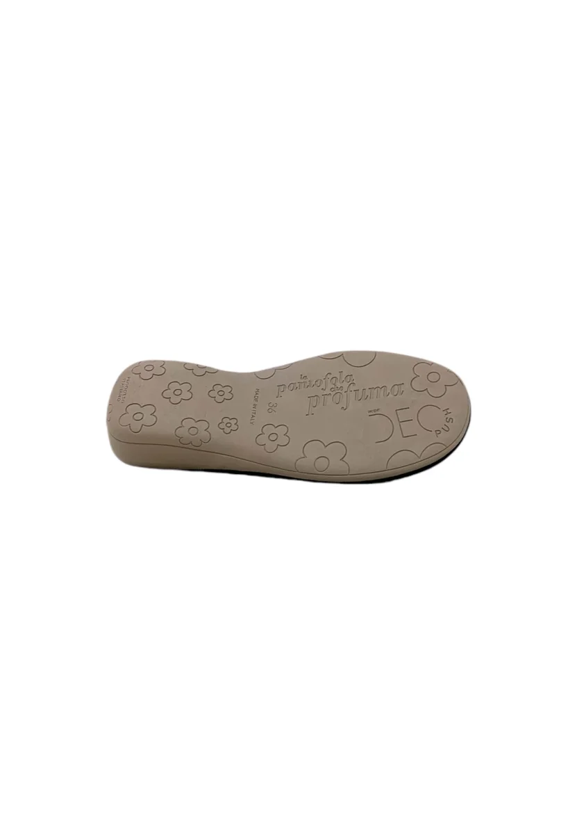 Le pantofole sono caratterizzate da un materiale esterno in tessuto, un plantare morbido traspirante, una suola in gomma sintetica alta circa 4 cm.