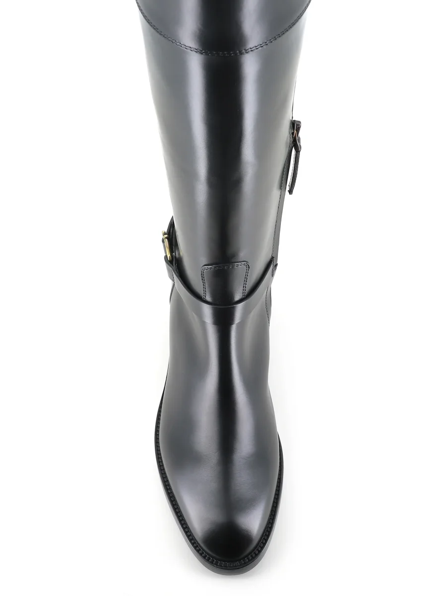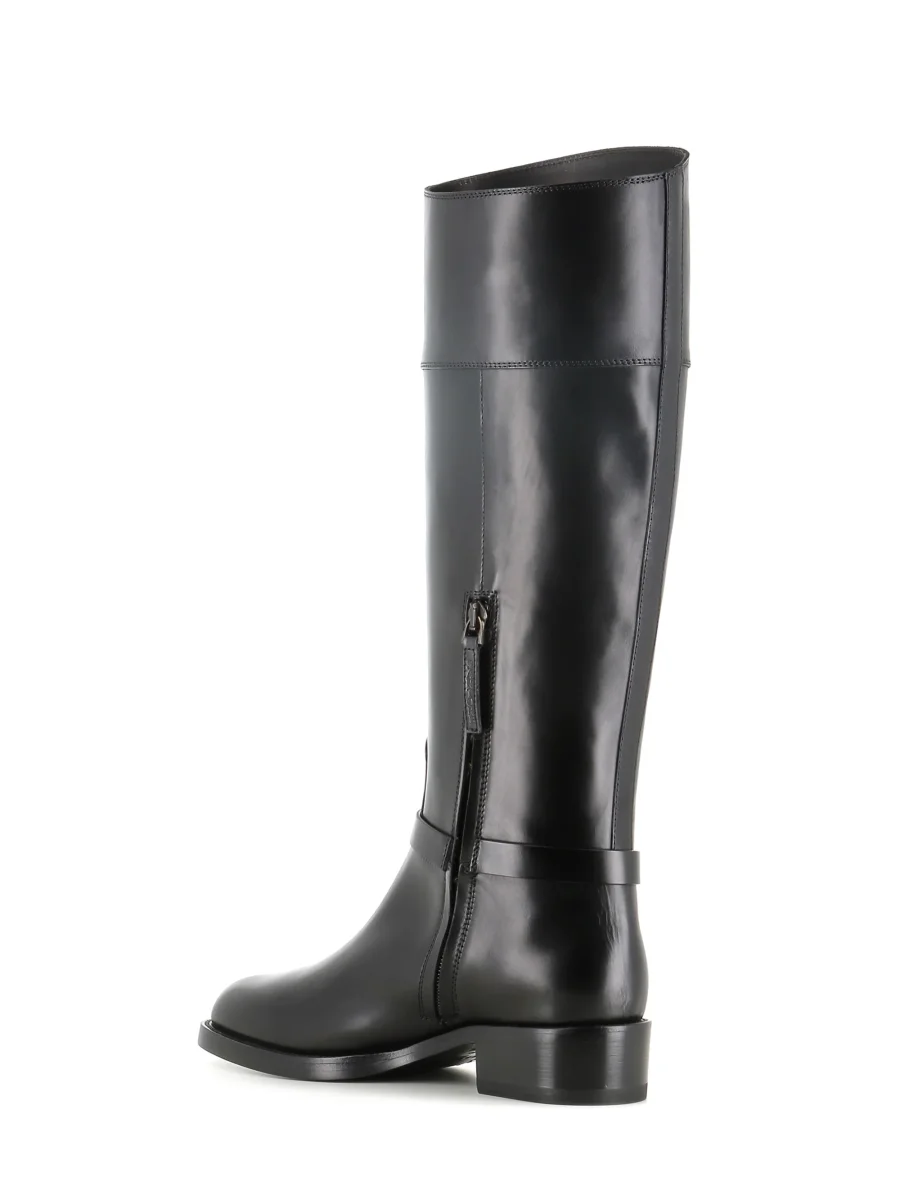 Stivale donna Sartore colore nero, realizzato in pelle spazzolata, caratterizzato da una punta affusolata e da una chiusura con zip laterale e fibbia. Suola in cuoio. Interno fodetato. Tacco: 3,5 cm Altezza gambale: 40 cm Circonferenza: 38 cm