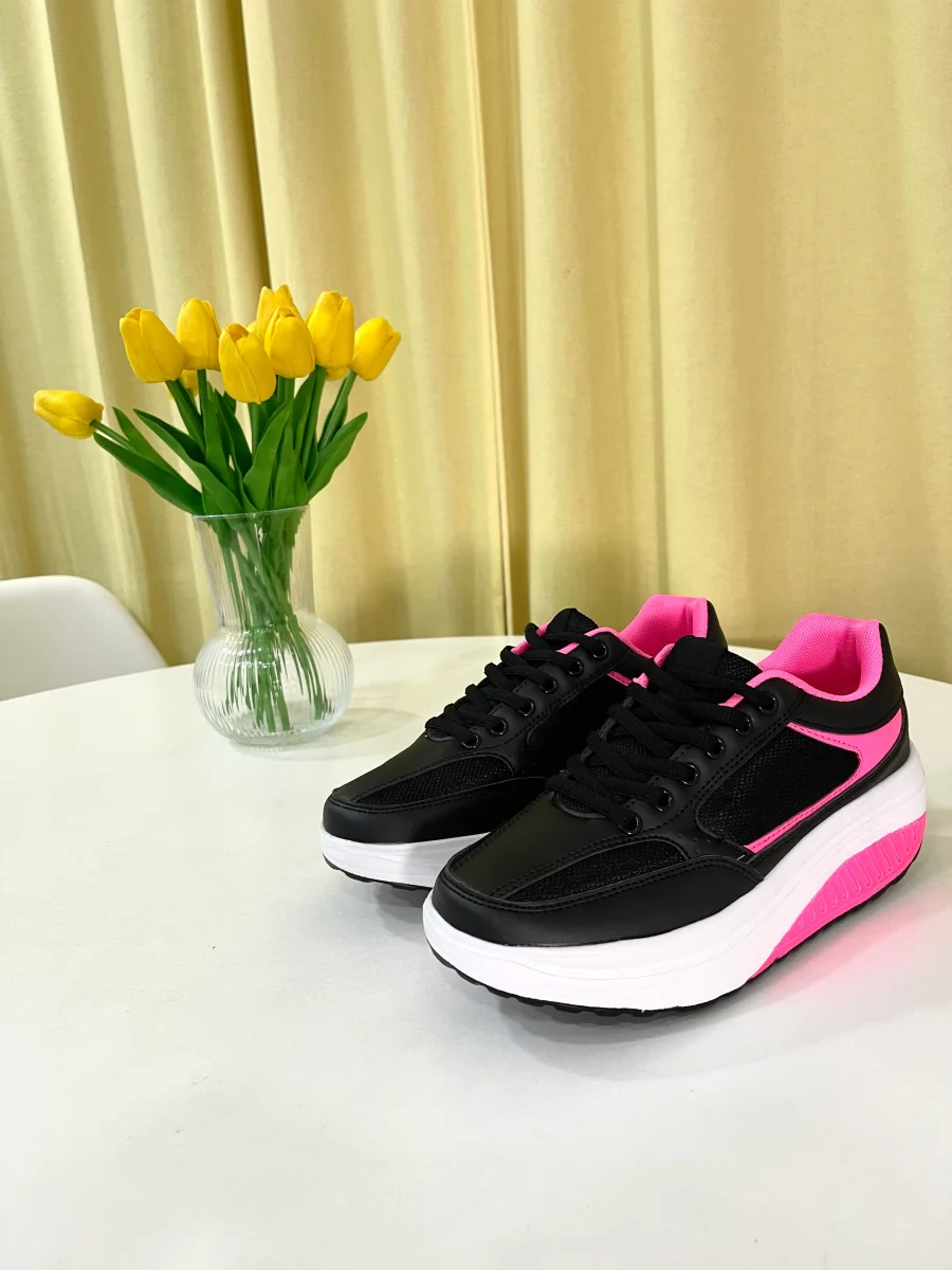Scarpe Basculanti Donna Modello Pechino Nero Fuxia In Eco Pelle