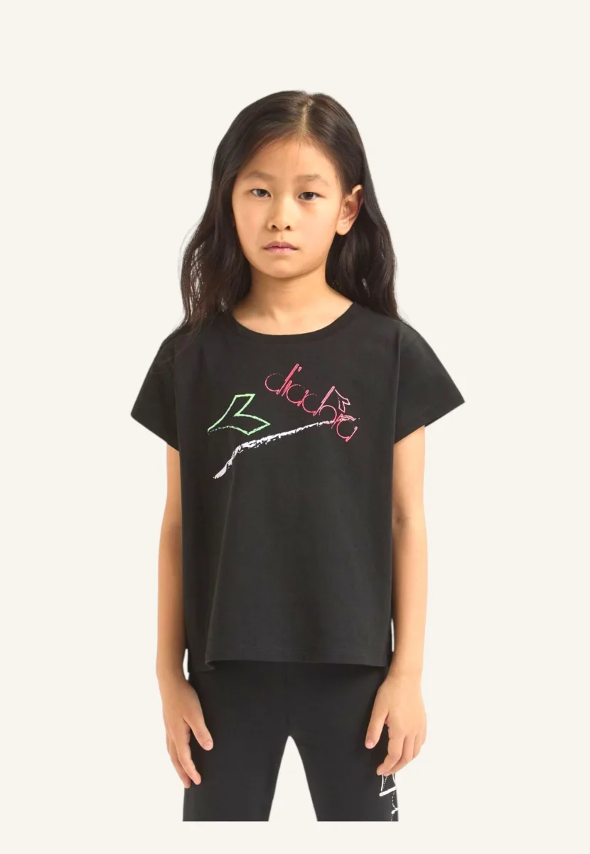 Vibes old school per le bimbe piรน creative. Questa maglietta a maniche corte in 100% cotone ti accompagnerร a scuola, nei pomeriggi di sport o nella tranquillitร di casa, con il comfort di un tessuto morbido e un fit regular.