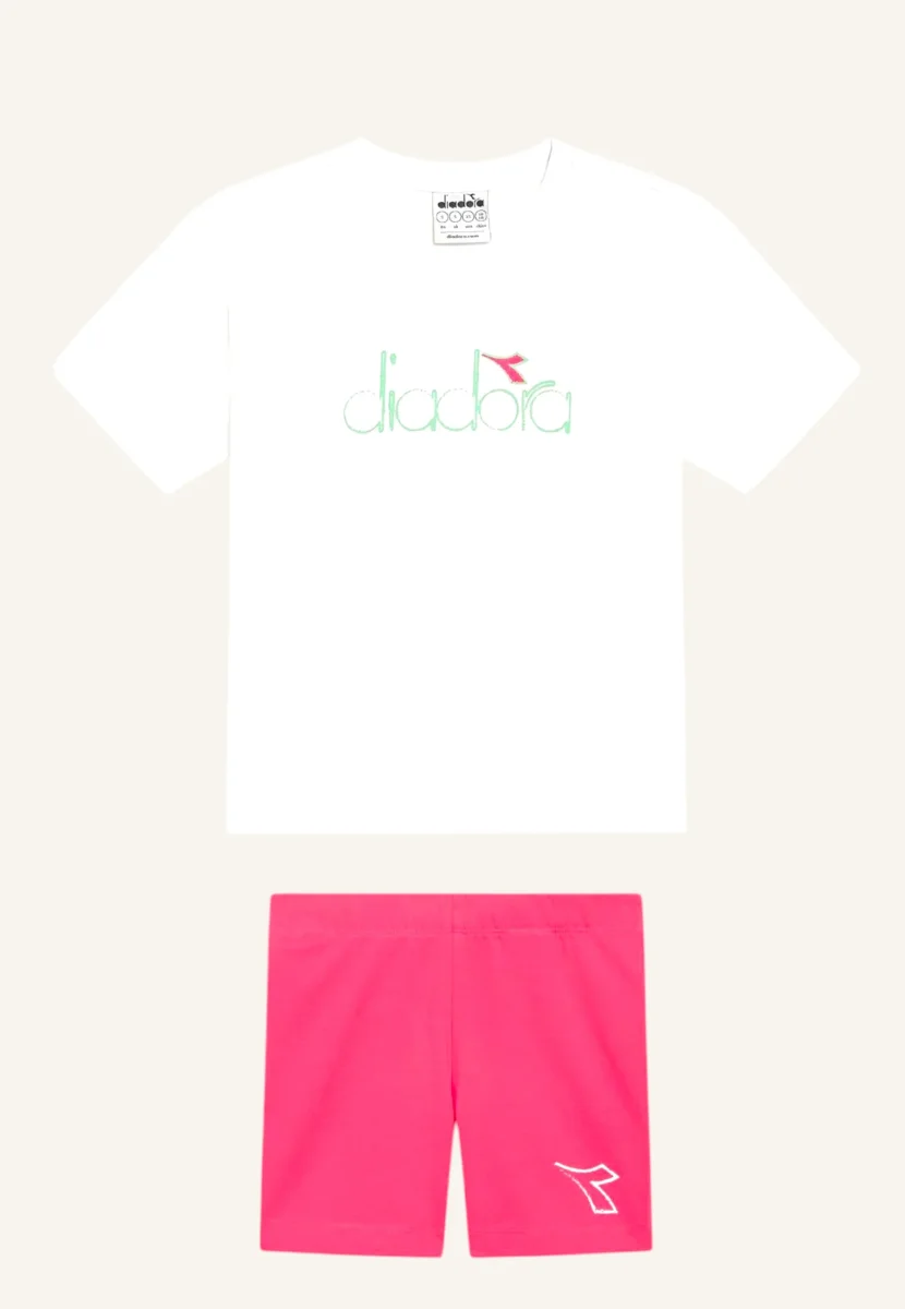 JG. Set Essential Sport SS รจ il set sportivo ed essenziale che non puรฒ mancare nel guardaroba di una giovane atleta. Fatti trovare sempre pronta per due palleggi a pallavolo o per lanciarti nella prossima avventura. Metti questo completo da bambina t-shirt e pantaloncini nello zaino e sei pronta a partire!