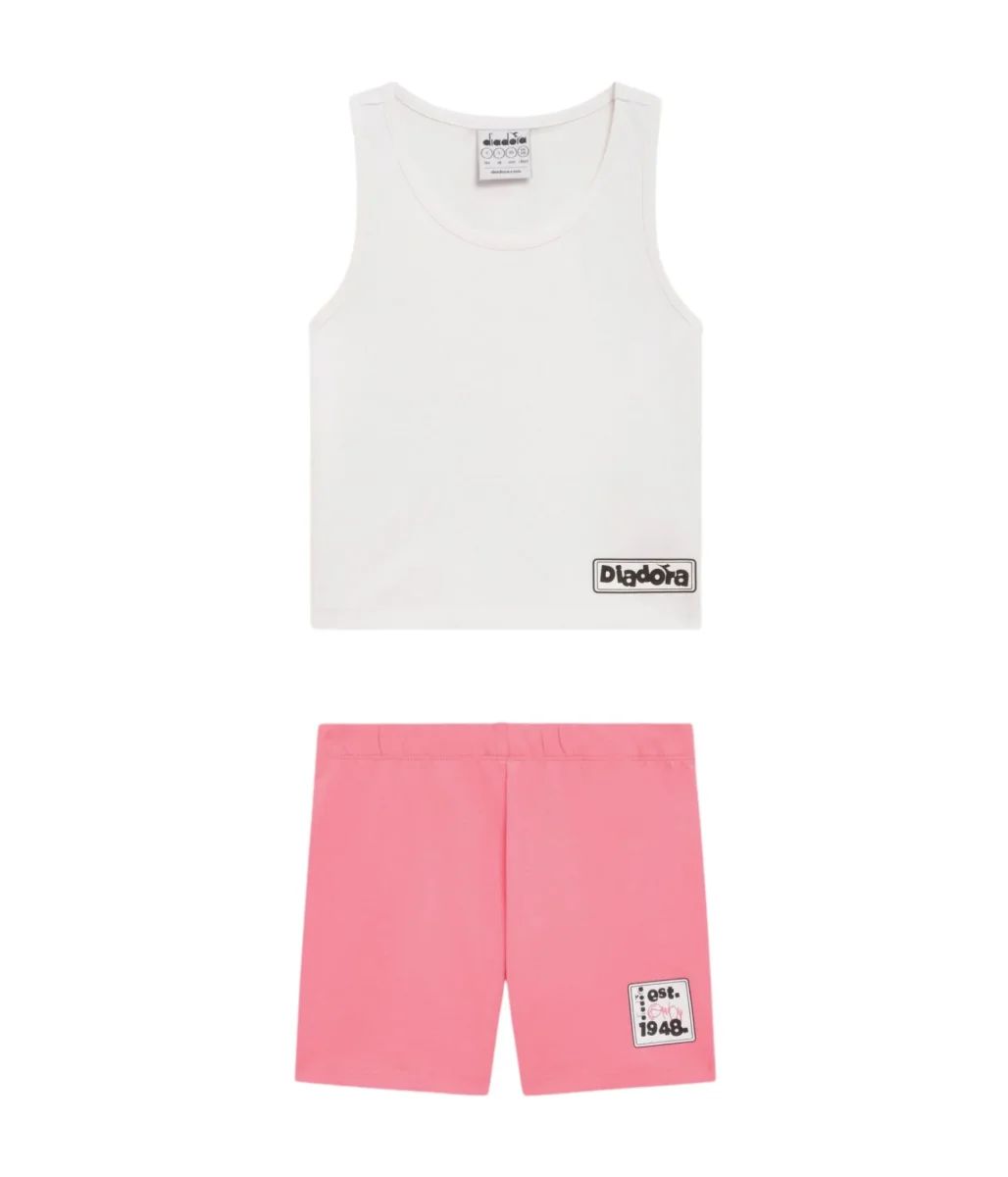 Scopri questo set sportivo in morbido jersey di cotone, fresco dal fit comodo per correre, viaggiare, scendere in campo. Metti questo completo da bambina shirt e pantaloncini nello zaino e sei pronta a partire!