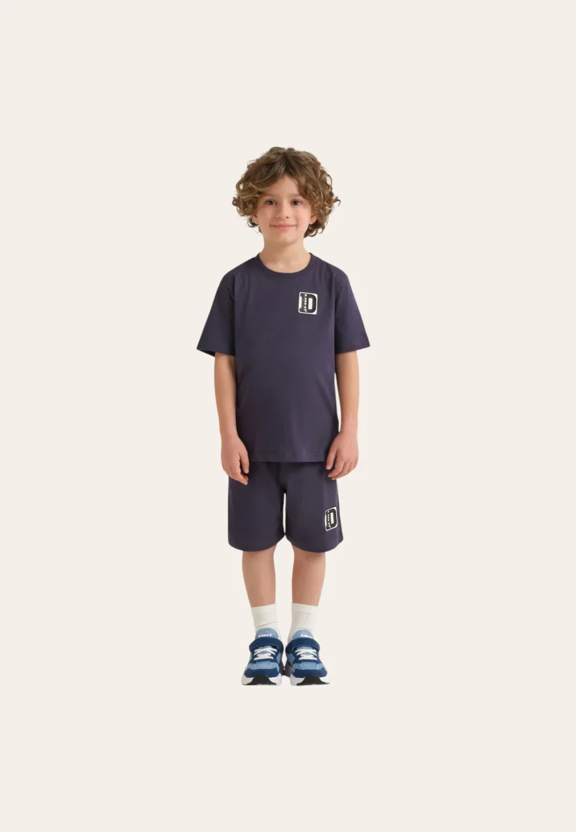 Una soluzione veloce e creativa per vestire i tuoi bimbi per la palestra: questo set sportivo per bambino composto da pantaloncini corti e t-shirt in abbinato รจ un outfit perfetto e completo che non puรฒ mancare nel guardaroba di un giovane atleta. Realizzato in 100% cotone.