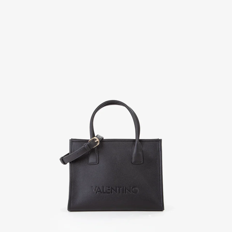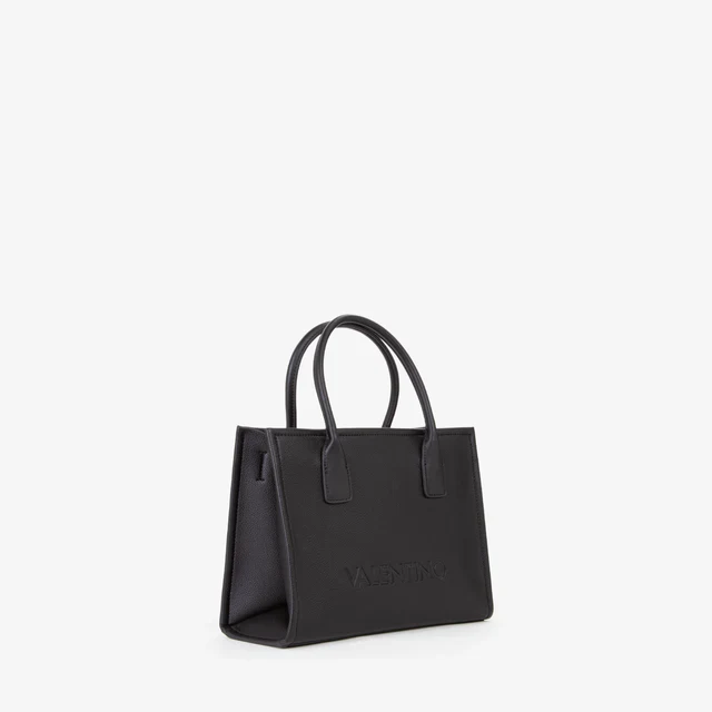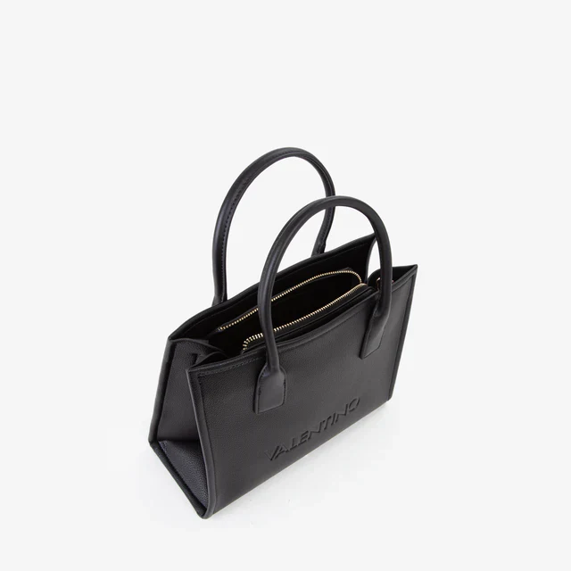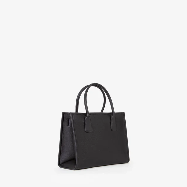Shopping a mano, dalle piccole dimensioni, con logo abbinato ai dettagli di colore a contrasto, dotata di tracolla regolabile.