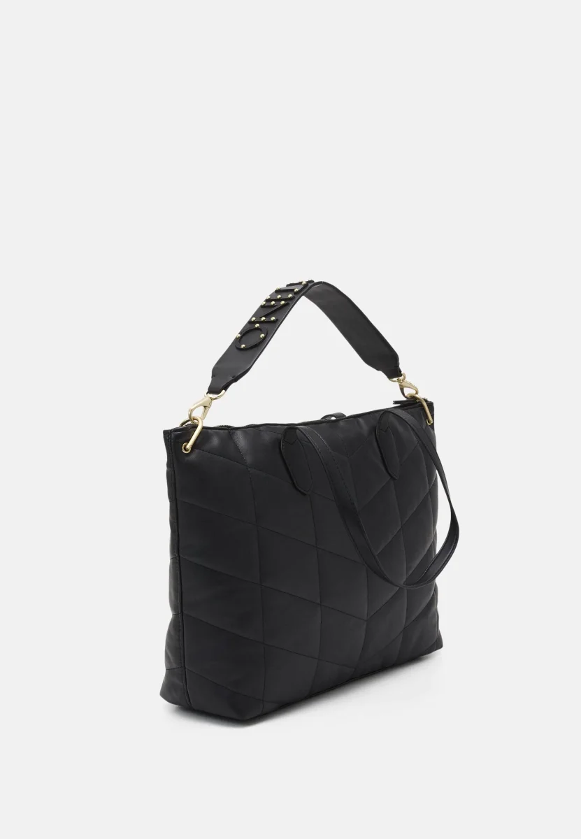 Shopping bag morbida in metalasse, dotata di particolare tracolla, cintura siglata.