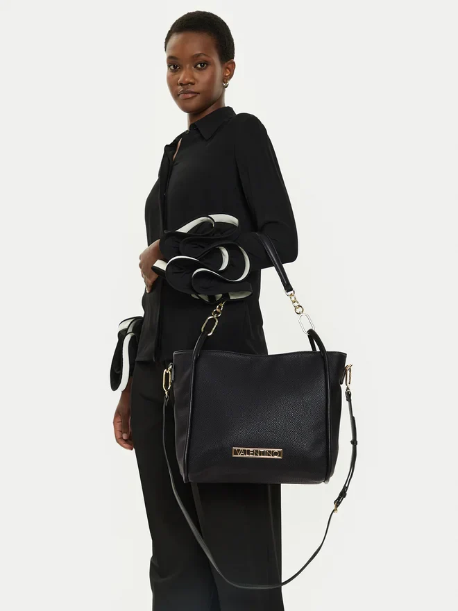 Scomparti: Tasca, scomparto con cerniera Chiusura: Cerniera Fantasia: Monocromo Dettagli: Fibbia Modalità di utilizzo: Tracolla regolabile, tracolla rimovibile, manico rimovibile Codice articolo: 5VA51H1HM-Q11 Altezza: 27 cm Lunghezza: 40 cm Ampiezza: 12 cm Manico: 20 cm Materiale : ecopelle