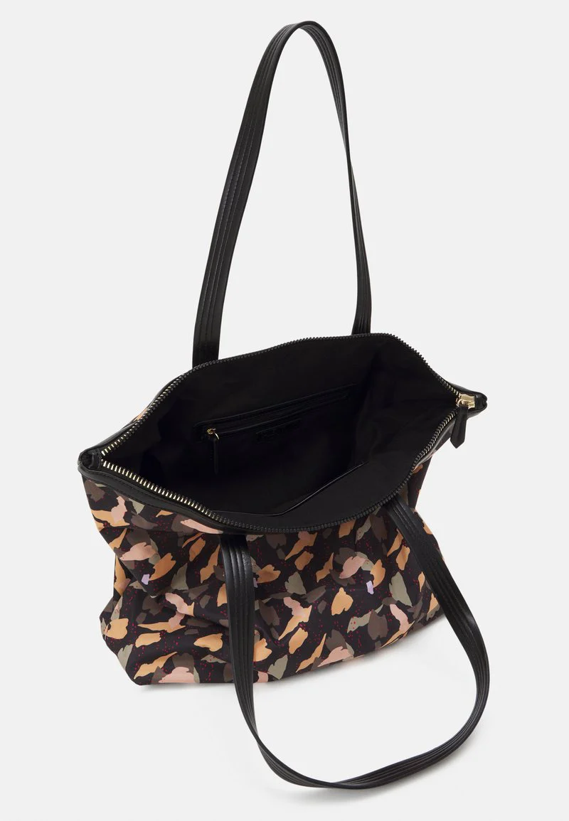 Shopping bag in morbido tessuto fantasia, dotata di comode tasche interne per cellulare e documenti.