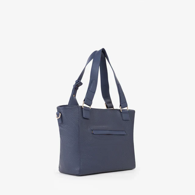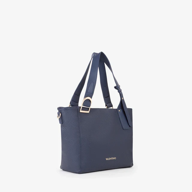 Shopping a spalla con fibbia decorativa, su cui è inciso il logo. Quest’ ultimo è presente anche gommato sul davanti.