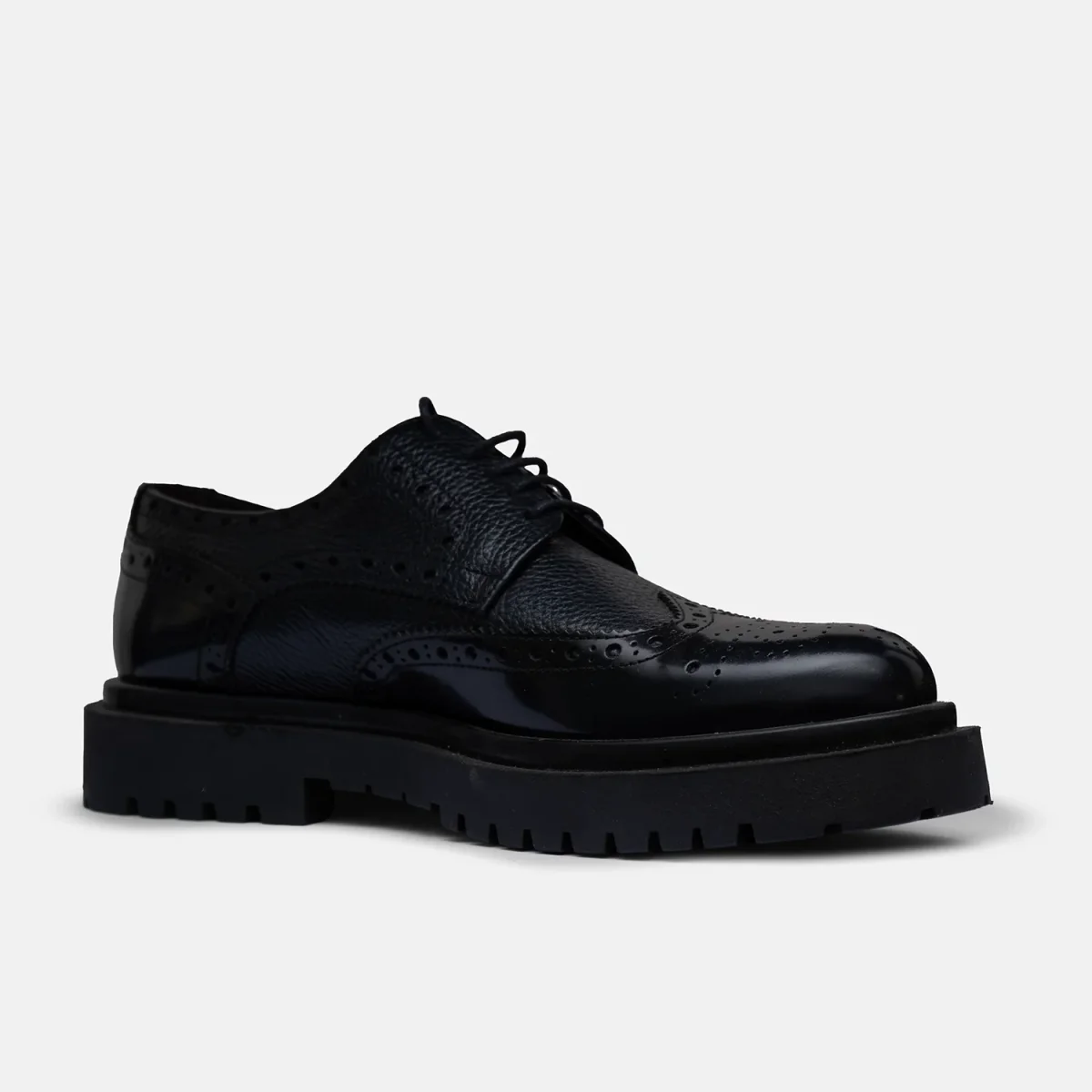 Derby brogue in pelle martellata e lucida