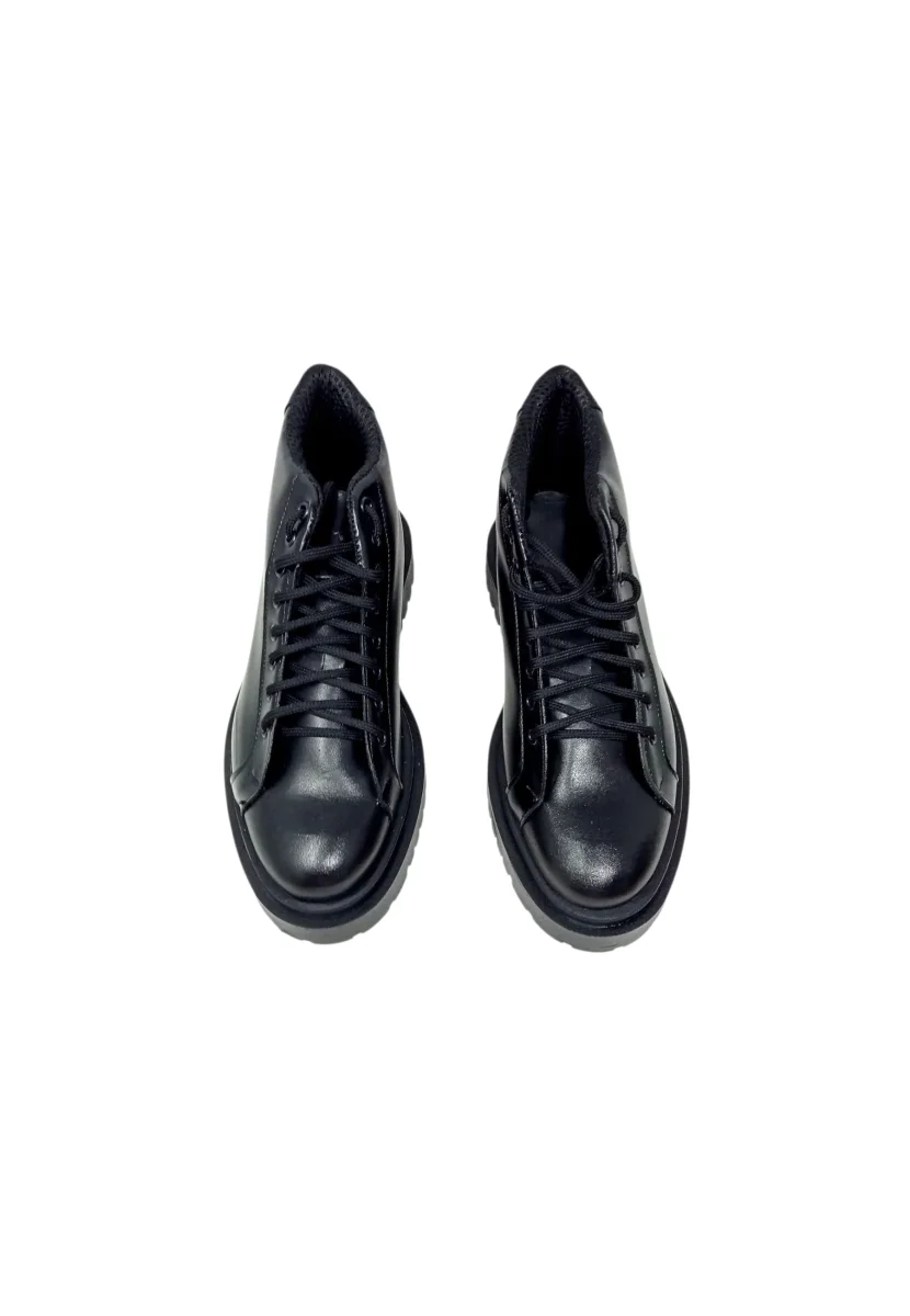 Scarpa da passeggio realizzata con materiale esterno in pelle e materiale interno in tessuto, una suola in gomma sintetica, chiusura con lacci e non prevedono tacco.