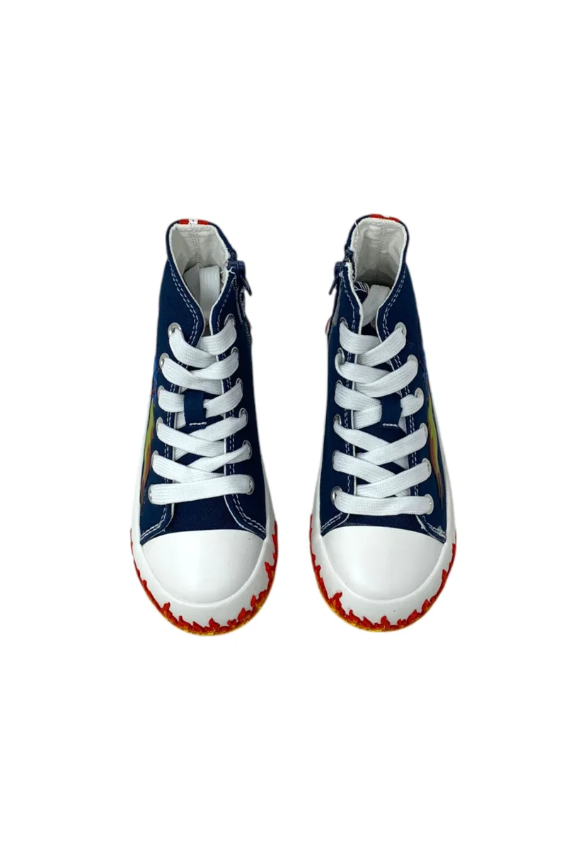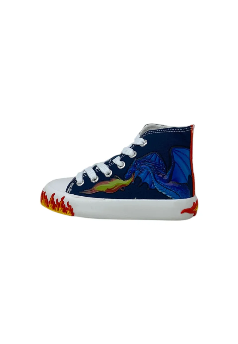Sulla parte laterale รจ rappresentato un simpatico drago ed un vortice di colore e fantasia caratterizzano queste calzature che allegeriscono le giornate dei piรน piccoli !