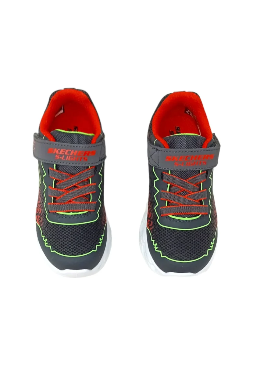Fai brillare i tuoi passi con lo stile sportivo e confortevole di Skechers S Lightsยฎ: Vortex 2.0 – Zorento. Presenta una tomaia in sintetico, fodera interna in tessuto con soletta ammortizzata, chiusura con strappo e lacci elasticizzati, intersuola luminosa.