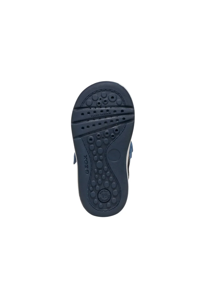 Sneaker primi passi confortevole e traspirante. Questo modello รจ caratterizzato da materiale esterno in tessuto e pelle, fodera intena in tessuto, soletta in pelle, suola in sintetico, chiusura con strappo e non c’รจ tacco.