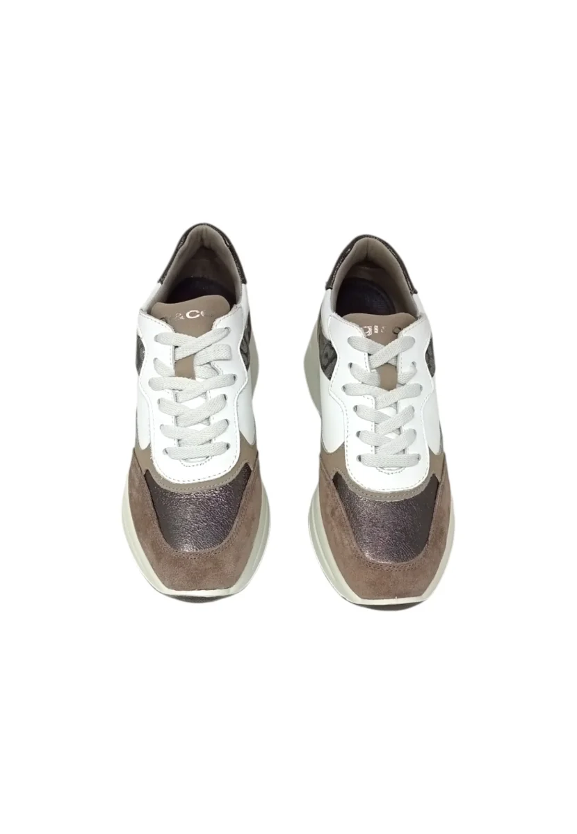 Le Sneakers sono costituite completamente con materiali riciclati, tomaia in pelle, fodera in tessuto, sottopiede in pelle, suola in gomma sintetica.