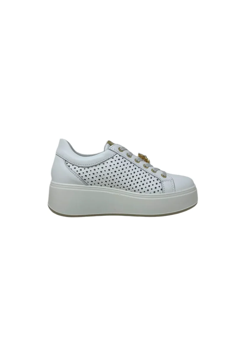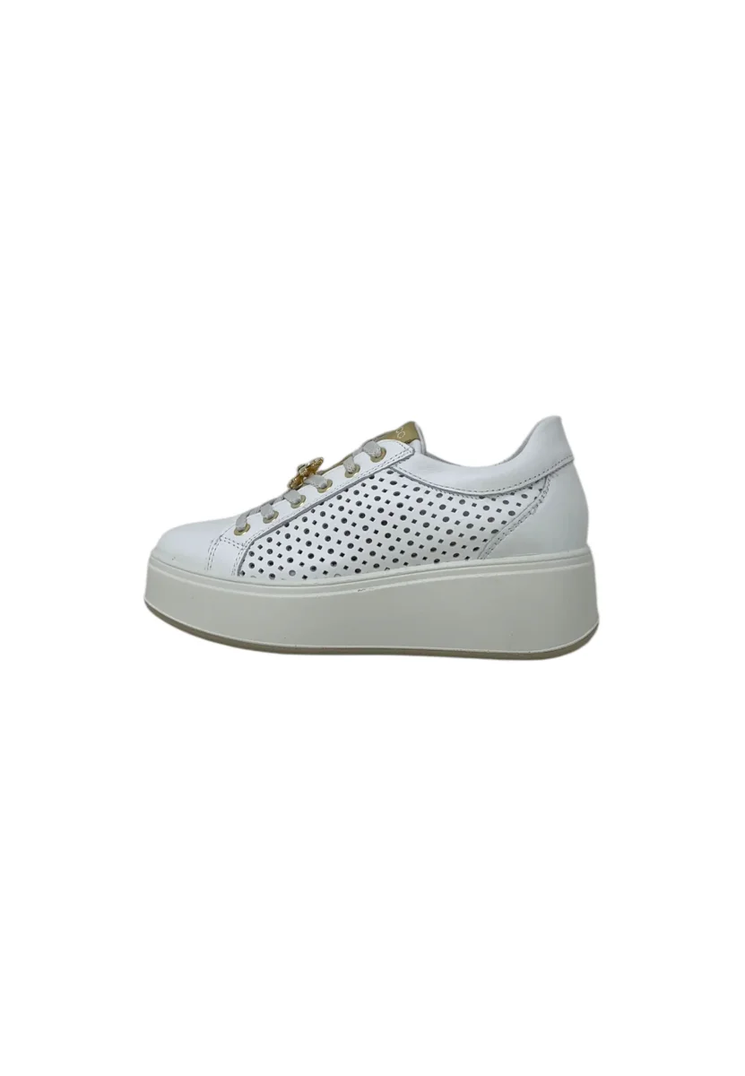 Le Sneakers sono costituite completamente con materiali riciclati, tomaia in pelle, fodera in tessuto, sottopiede in pelle, suola in gomma sintetica con zeppa alta circa 4 cm.