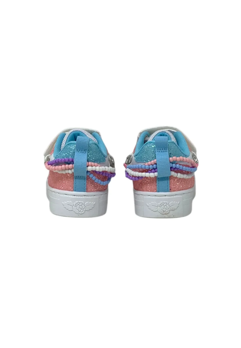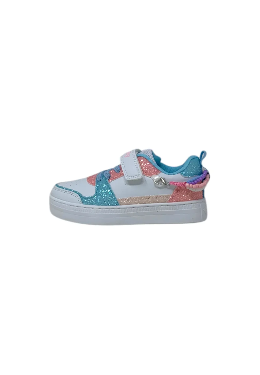 Le scarpe sono caratterizzate da un materiale esterno in sintetico con inserti in glitter, una fodera in tessuto, il materiale della suola in gomma sintetica. Chiusura con strappo e finto laccio e non prevedono un tacco.