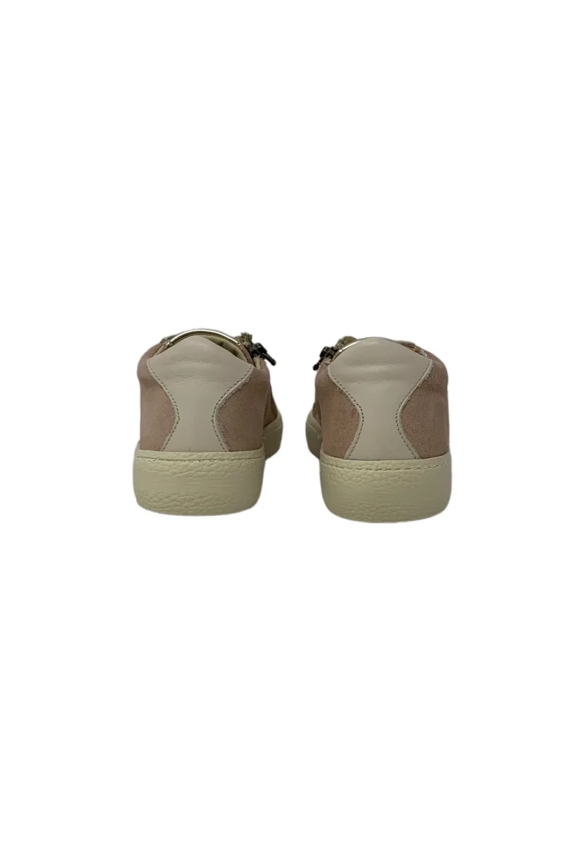 Le calzature PRIMIGI sono caratterizzate da un materiale esterno in pelle, una suola in sintetico che perรฒ garantisce la massima flessibilitร . La tomaia interna รจ in tessuto, mentre il sottopiede รจ in pelle: traspirante, anatomico ed estraibile. Le sneakers sono facili da calzare con una forma ergonomica e morbida. Le parti in metallo non contengono Nickel. Prevede la chiusura con laccio elastico e zip laterale.