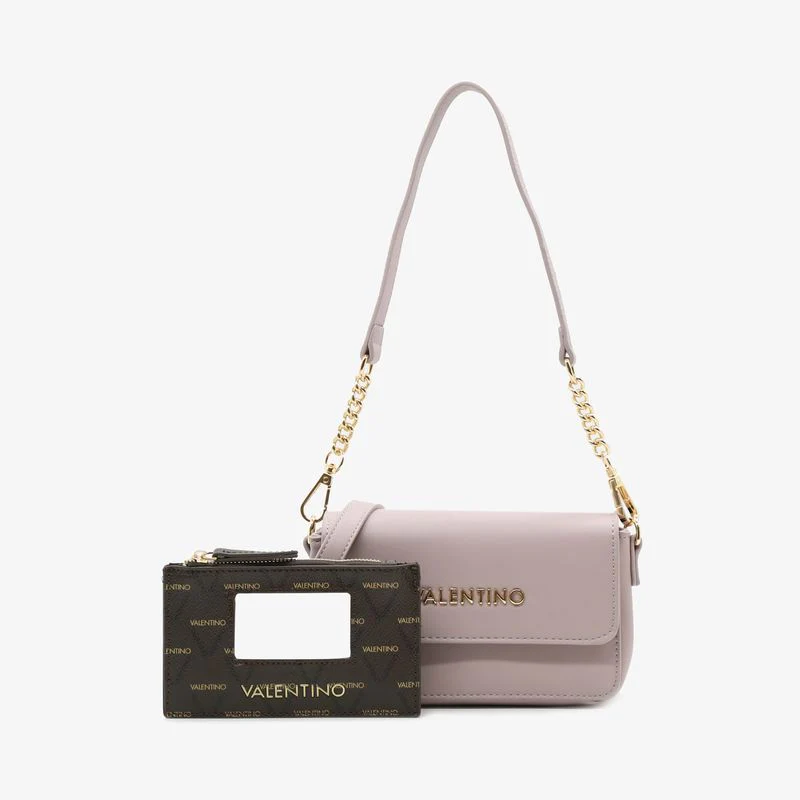 Mini tracolla in nappa con lettere metalliche e portacarte con specchio estraibile personalizzato.