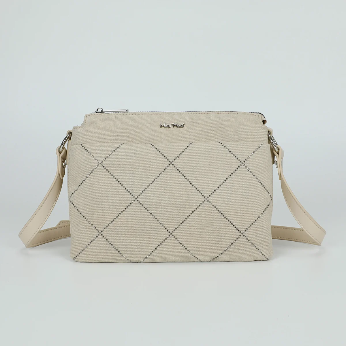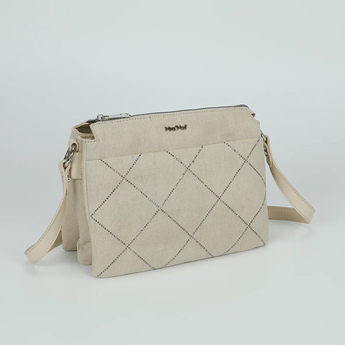 BORSA A BUSTA IN JEANS CON STRASS LUNGHEZZA: 26cm PROFONDITA’: 4cm ALTEZZA: 18cm COMPOSIZIONE: 90%CO 10%PU