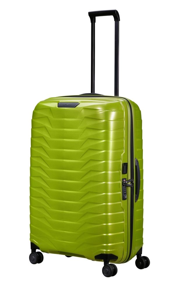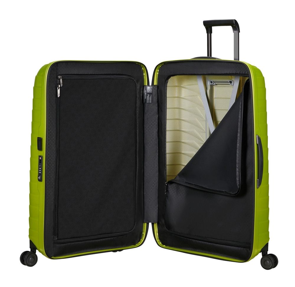 Trolley grande 75cm Samsonite Proxis. Trolley realizzato in robusto Roxkin™, 4 ruote piroettanti gemellari per la massima manovrabilità. Carrello di traino telescopico bitubo con push botton, chiusura a tripla combinazione con sistema TSA per gli Stati Uniti. Interno foderato con divisorio e nastri per bloccare l’abbigliamento. Tag ID integrato e retrattile. Garanzia 10 anni.