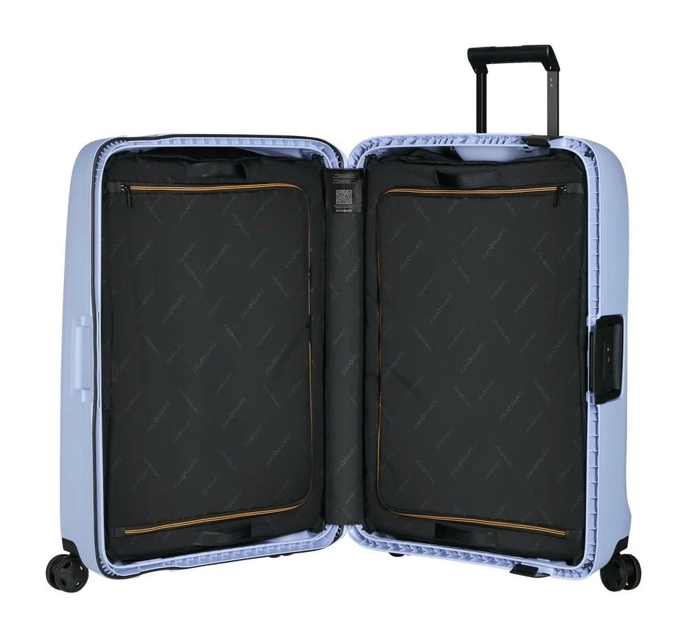 Il guscio è realizzato in polipropilene, con almeno il 70% di materiale riciclato (in peso), una scelta che riduce l’impatto ambientale mantenendo elevati standard di robustezza e durata, tipici della qualità Samsonite.