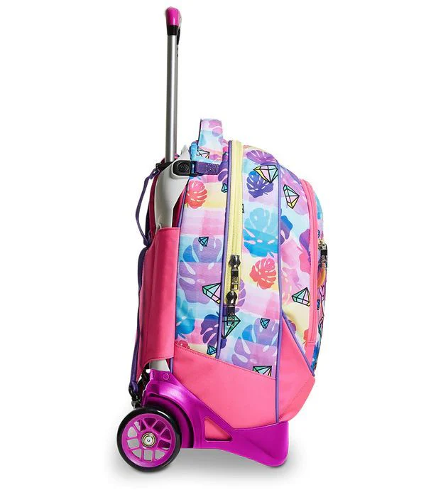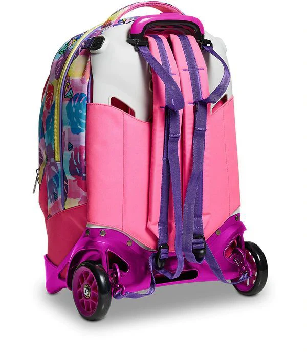 Trolley scuola 3 ruote SJ Jack 3WD. Zaino realizzato in robusto poliestere, schienale imbottito e rivestito in tessuto, spallacci imbottiti e traspiranti. Lo zaino Jack di SJ può essere comodamente sganciato dal carrello di traino in poche semplici mosse, per la pulizia o per la portabilità a zaino. Il carrello di traino è rinforzato con push botton, il fondo rigido e le grandi ruote gommate e silenziose garantiscono un trasporto semplice in ogni condizione. Dotato di sistema a 3 ruote per agevolare la salita dei gradini. Ampia tasca principale e tasca frontale chiuse da zip. Il Crossover System consente di trascinare il trolley senza sporcare gli spallacci: quando solleverai la barra telescopica di traino gli spallacci si alzeranno in maniera automatica! Garanzia 2 anni.