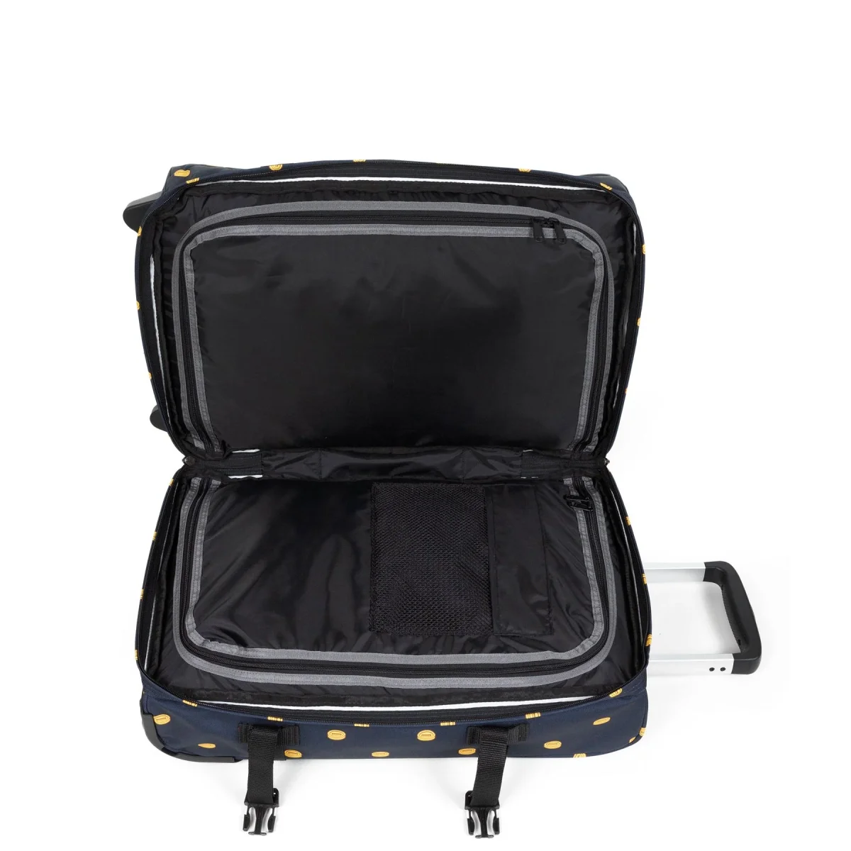 Il nostro classico bagaglio a mano in una versione con ancora più funzionalità. Riempi i due scomparti e tieni al sicuro i tuoi effetti personali con il lucchetto integrato. Questo resistente modello presenta struttura in alluminio, supporti di protezione e rombi in rilievo sul manico.