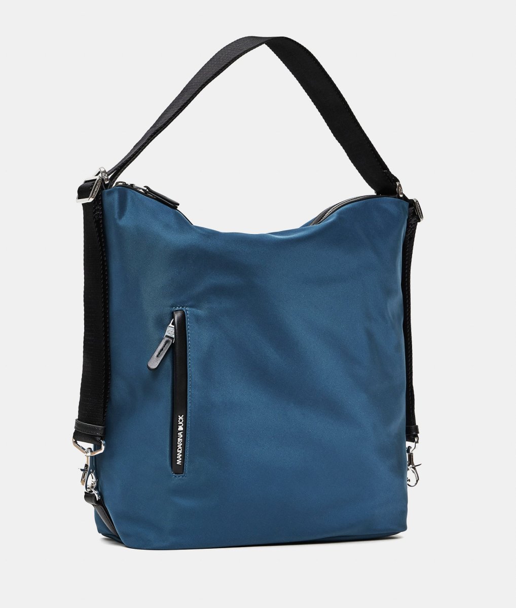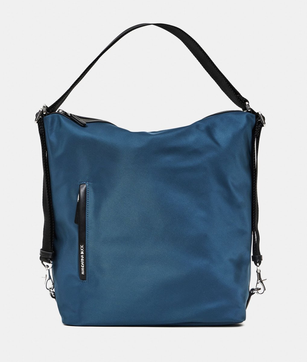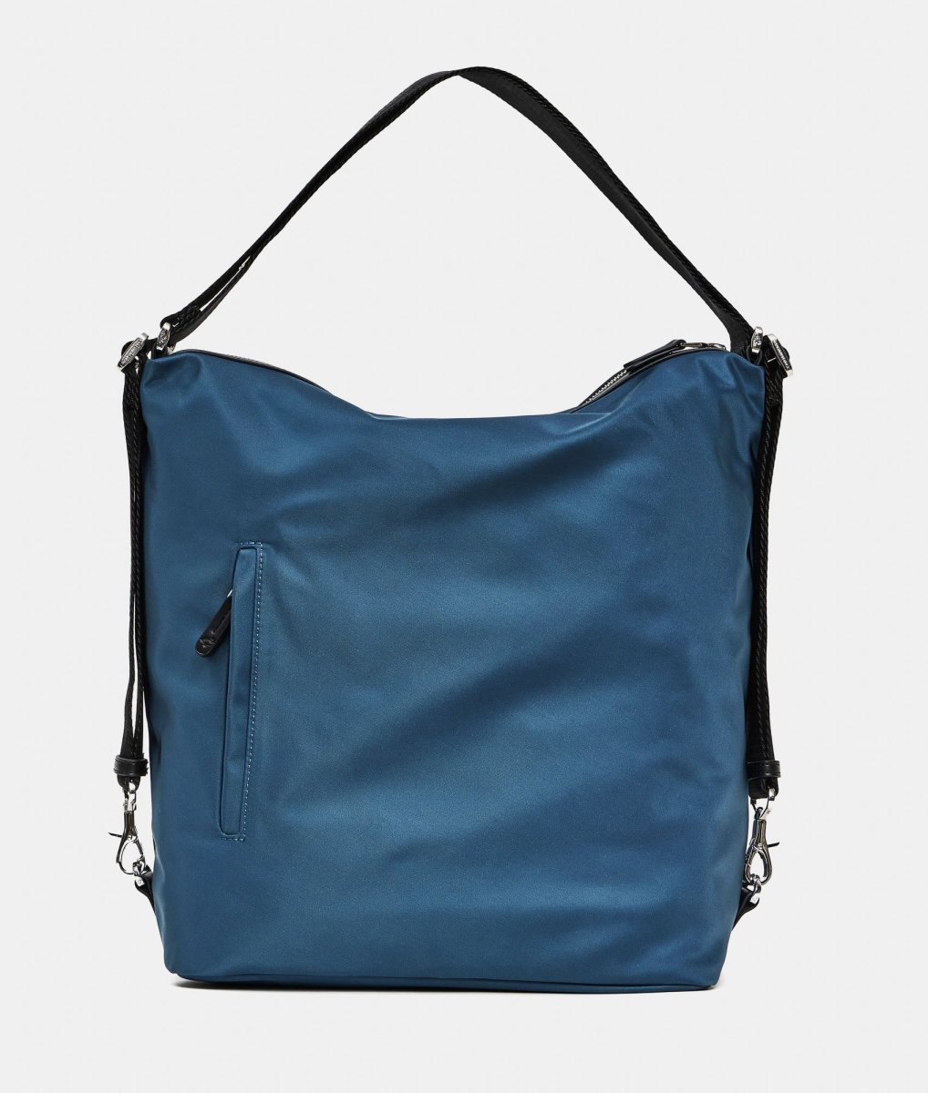 - Borsa a spalla in nylon brillante con dettagli in ecopelle, trasformabile in zaino con un semplice gesto della mano . Funzionale e leggera dal look sporty-chic. Tasche esterne integrate nel design degli articoli. Interni personalizzati con molteplici tasche. Accessori in metallo, puller personalizzati e logo lettering in metallo