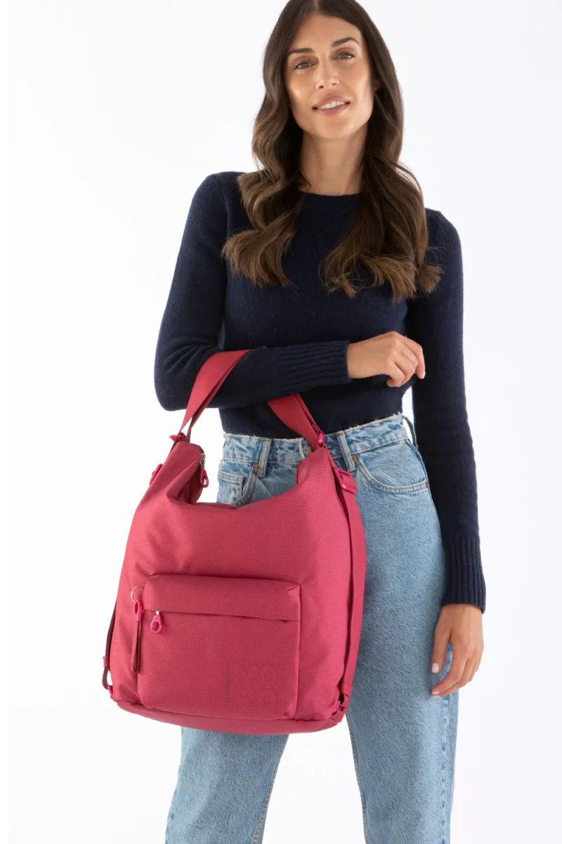 - Borsa a spalla realizzata in mitrix, storico materiale del marchio Mandarina Duck che si distingue per resistenza, versatilità ed effetto cangiante. Leggero e versatile, adatto per uso quotidiano. Trasformabile in zaino grazie ad un rapido gesto. Spallacci regolabili e tasca frontale con zip
