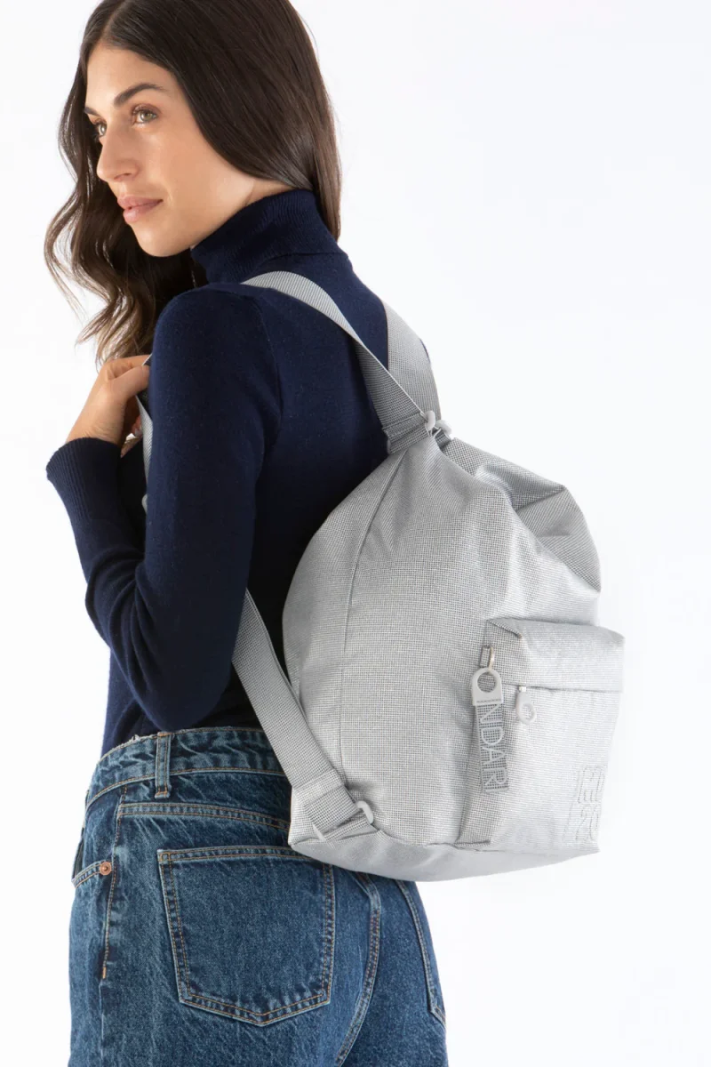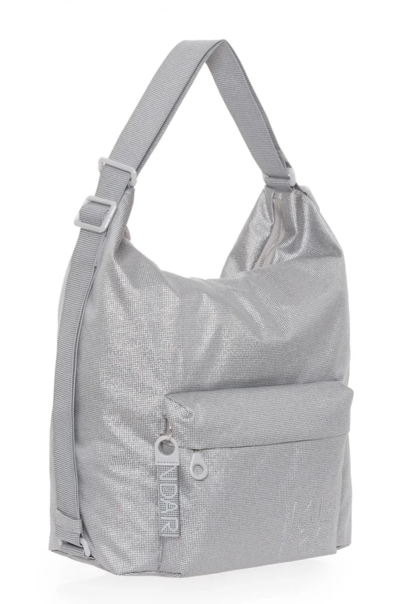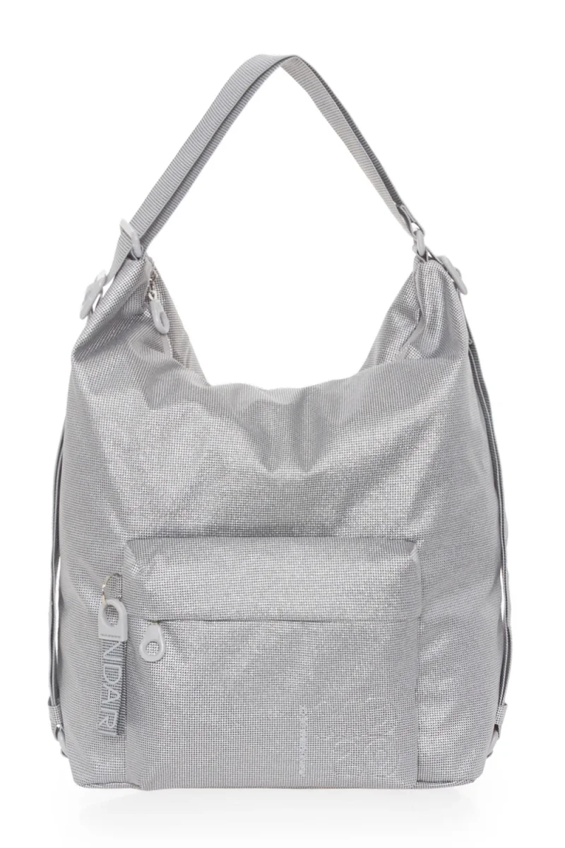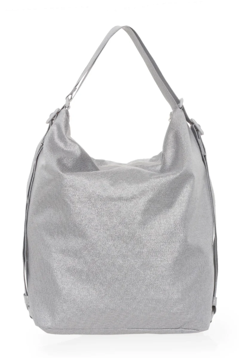 - Borsa a spalla realizzata in mitrix, storico materiale del marchio Mandarina Duck. Resistente e leggero, è reso luminoso dall ‘ intreccio con un filo lurex. Utilizzabile anche come zaino grazie ad un rapido adeguamento della tracolla. Dotata di tasca esterna con zip