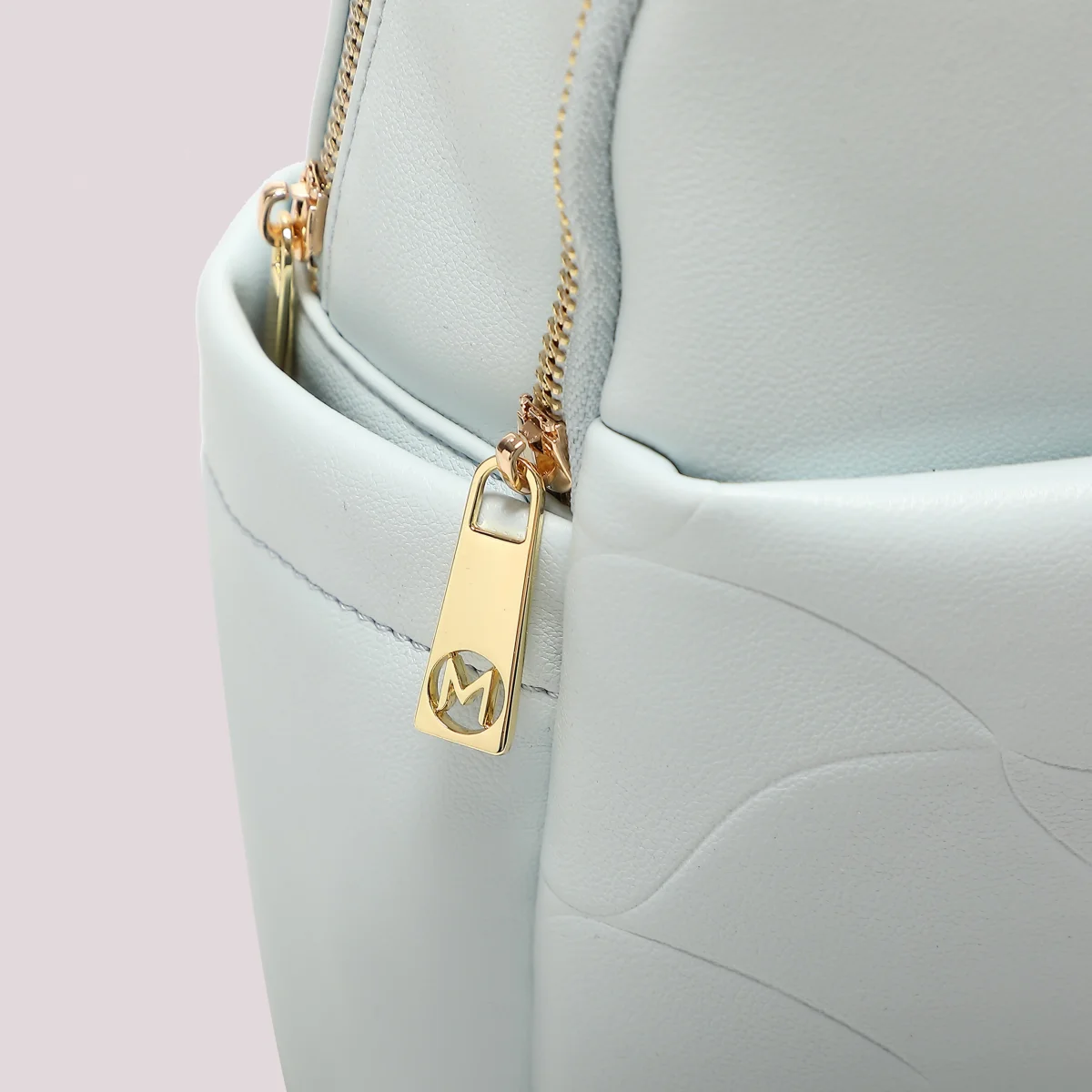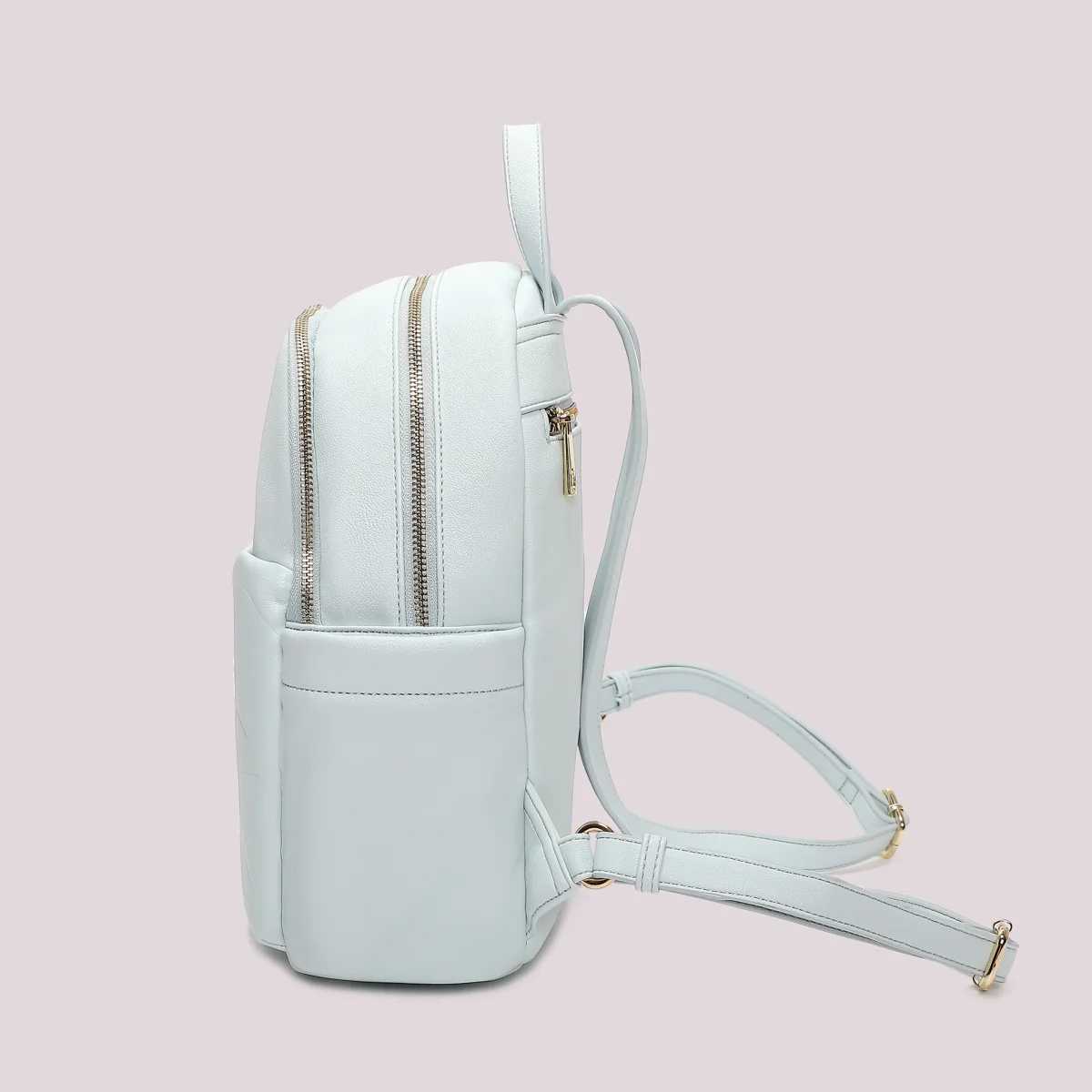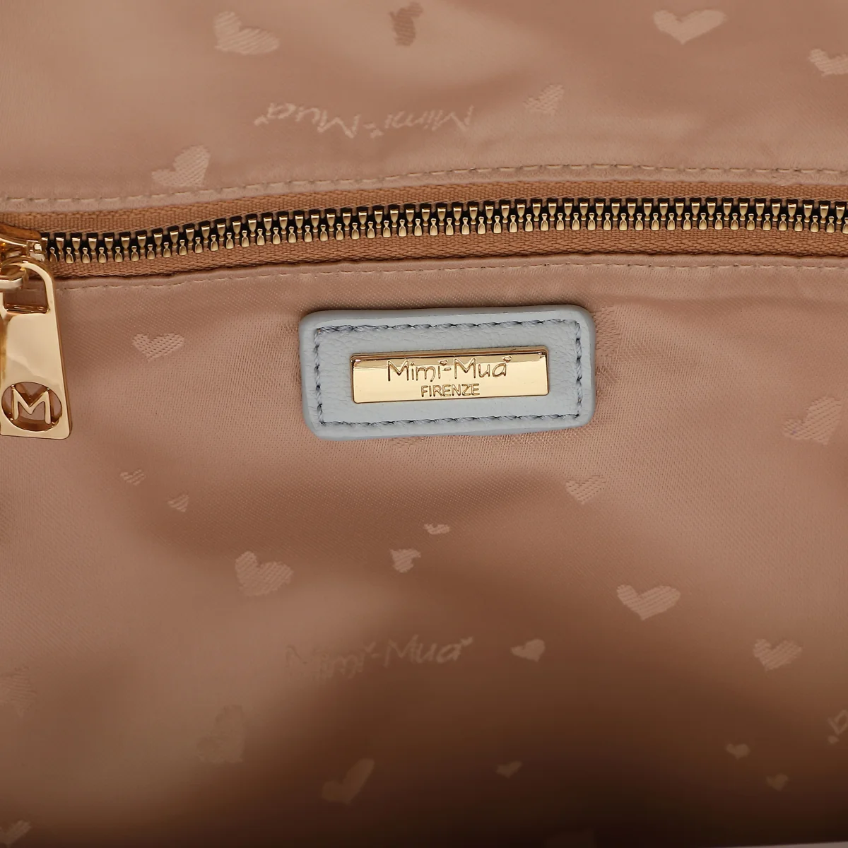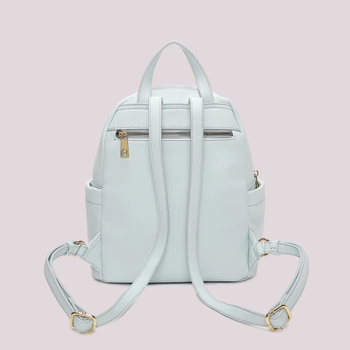 Zaino donna Mimì-Muà. Zaino realizzato in morbido materiale sintetico. Ampia tasca principale chiusa da zip, tasca interna chiusa da zip e tasche per piccoli oggetti. Spallacci regolabili in lunghezza.