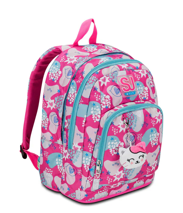 Zaino doppio scomparto con charme a forma di gattino, amovibile e utilizzabile come portachiavi