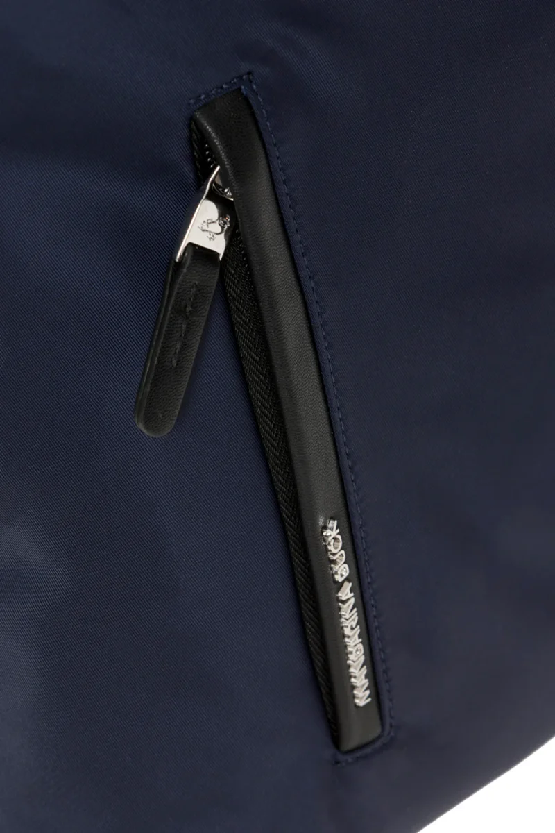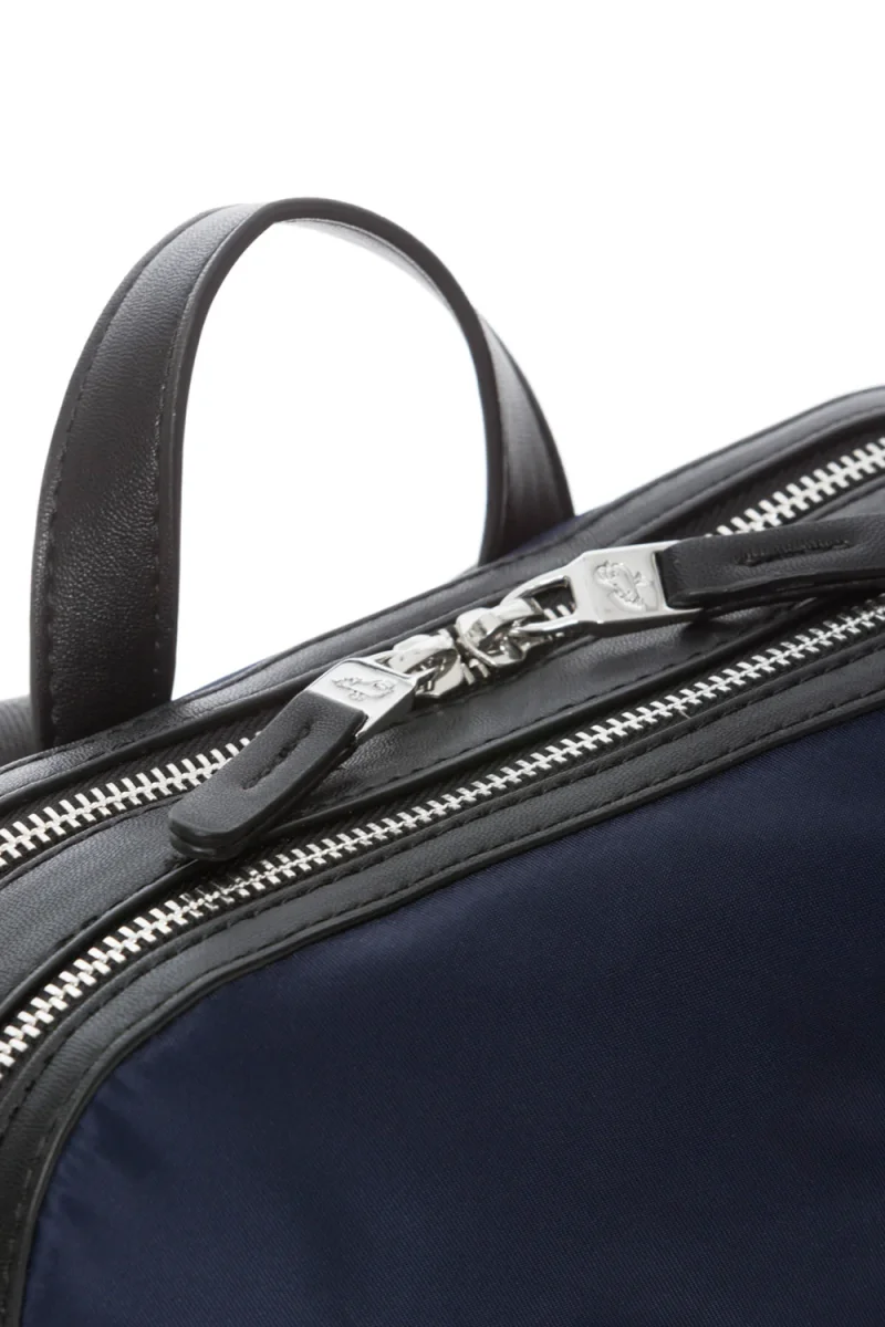 - Borsa a mano in nylon brillante con dettagli in ecopelle. Funzionale e leggera dal look sporty-chic. Tasche esterne integrate nel design degli articoli. Interni personalizzati con molteplici tasche. Accessori in metallo, puller personalizzati e logo lettering in metallo. Spallacci regolabili